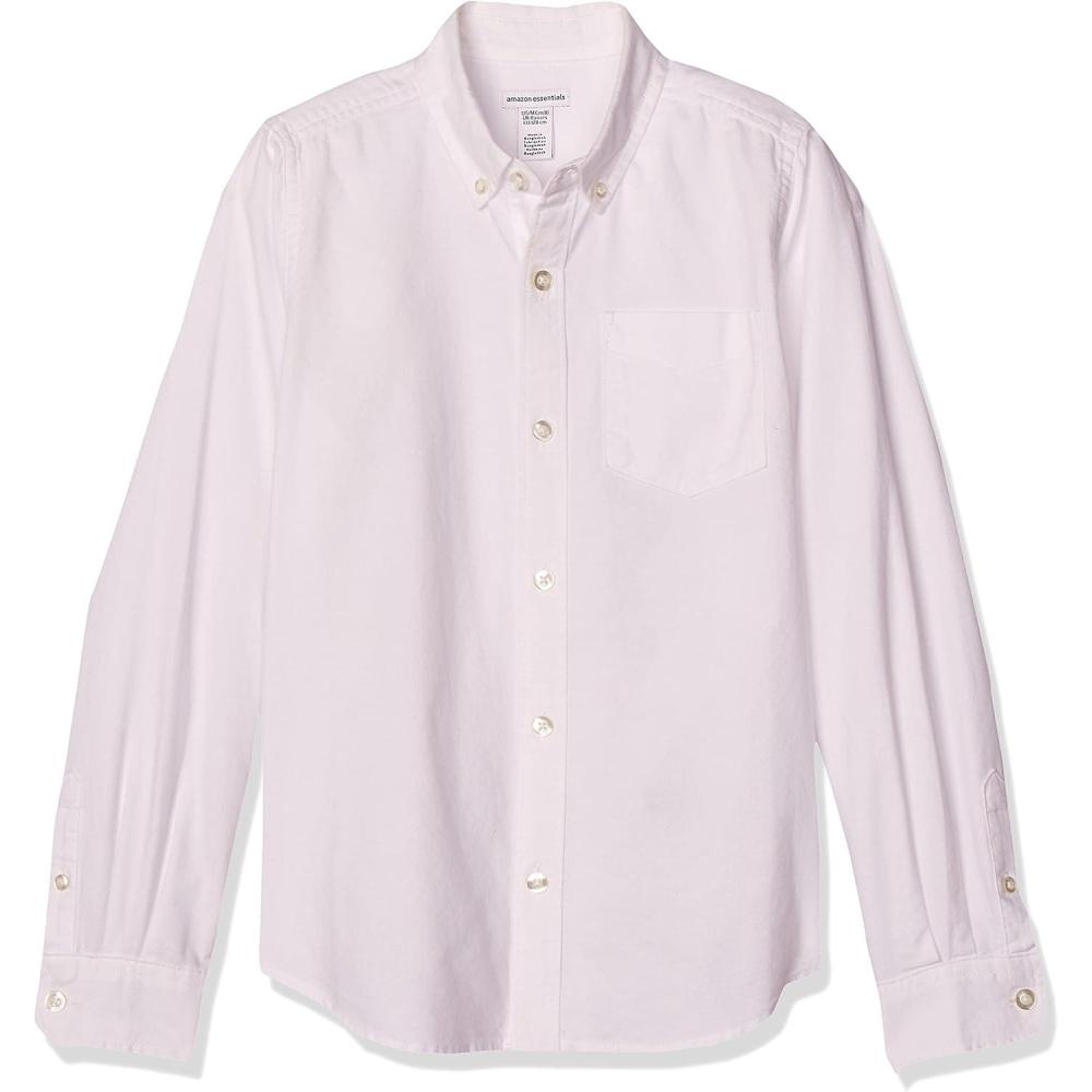 Amazon Essentials Boys’ Uniform Classic Fit Long-Sleeve Woven Oxford Shirt(White)