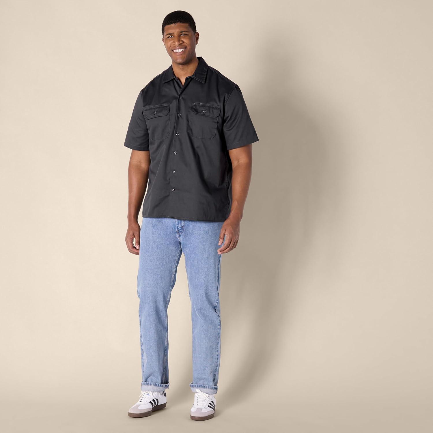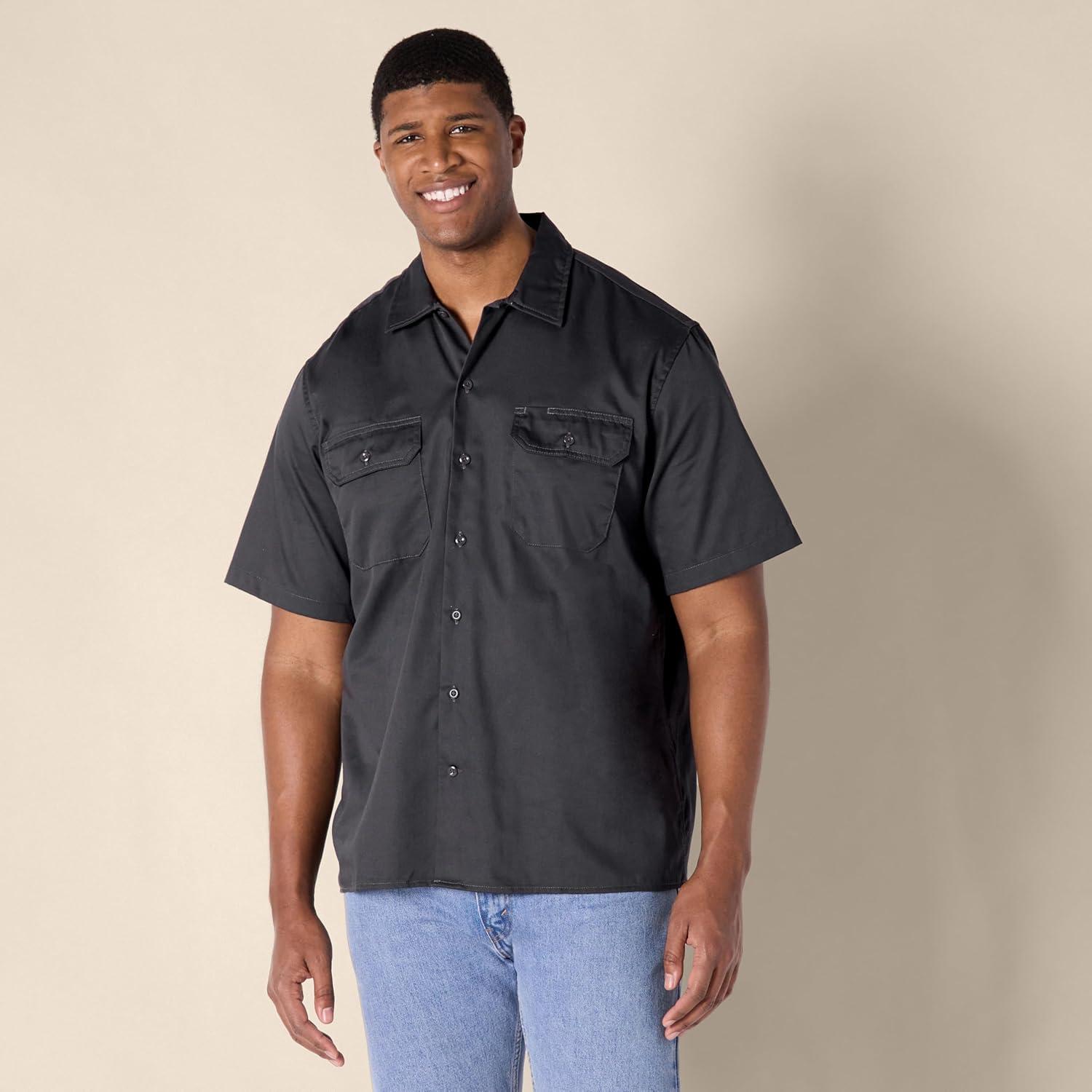Crafted from a poly-cotton blend, this men's button down shirt provides durability and performance, making it ideal for various occasions. This shirt offers a relaxed fit through the shoulders, chest, and waist. The classic styling makes it a versatile piece suitable for clothing enthusiasts. With its stain and wrinkle-resistant properties, this men's button-down short-sleeve shirt stands up to daily wear, making it a practical choice for everyday men's clothes. The spread collar construction, center front button placket, and double chest pockets with button closure add a touch of functionality.