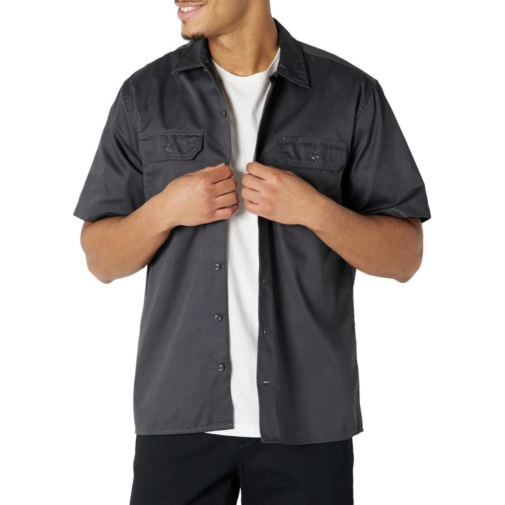 Amazon Essentials Button Up Shirt for Men, Short-Sleeve, Stain and Wrinkle-Resistant(Grey)