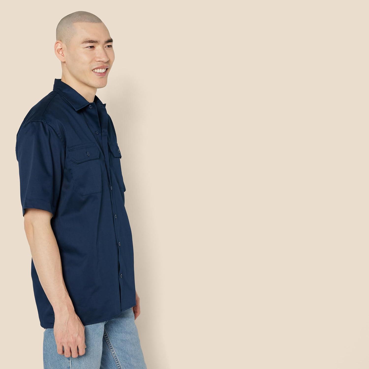 Amazon Essentials Button Up Shirt for Men, Short-Sleeve, Stain and Wrinkle-Resistant(Navy)