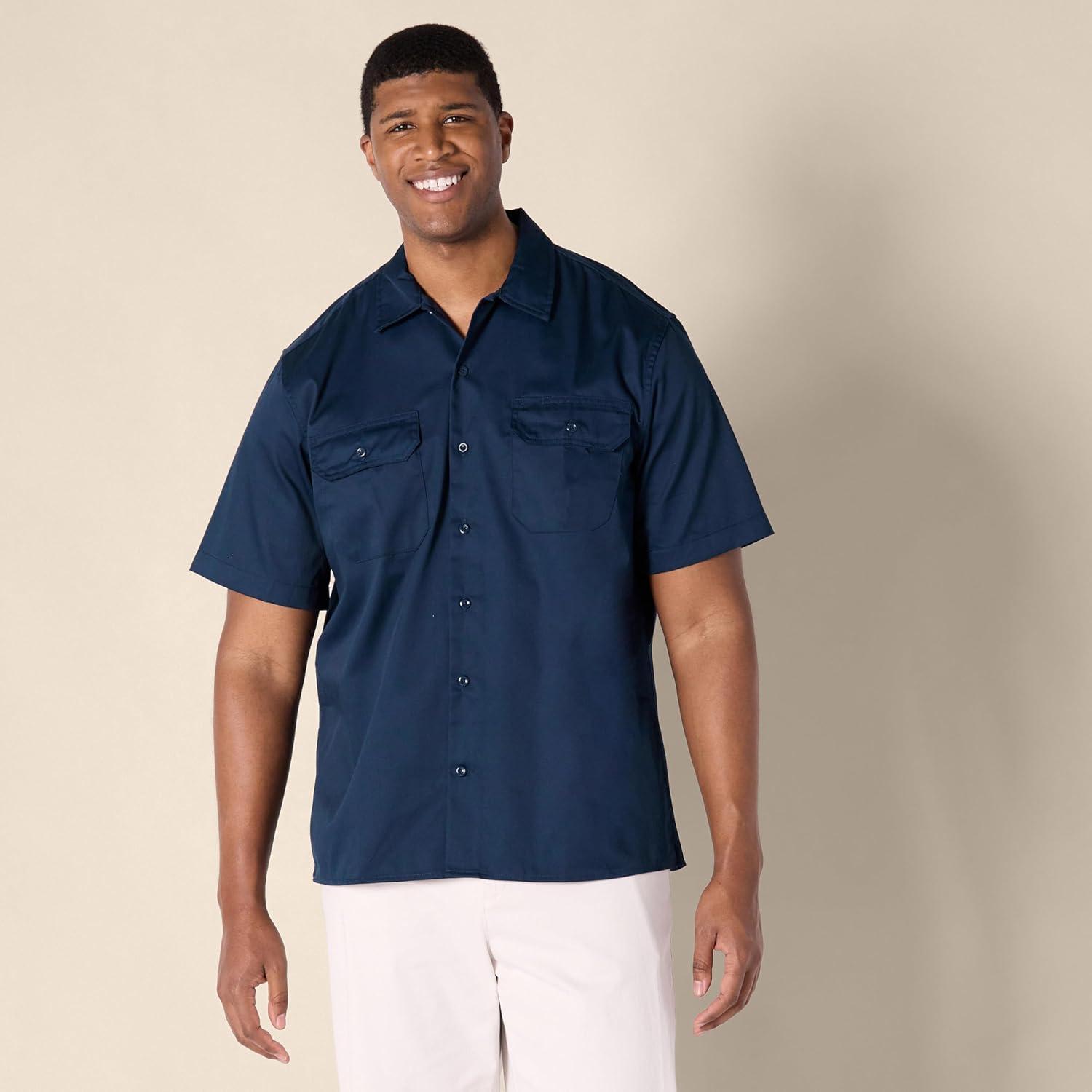Crafted from a poly-cotton blend, this men's button down shirt provides durability and performance, making it ideal for various occasions. This shirt offers a relaxed fit through the shoulders, chest, and waist. The classic styling makes it a versatile piece suitable for clothing enthusiasts. With its stain and wrinkle-resistant properties, this men's button-down short-sleeve shirt stands up to daily wear, making it a practical choice for everyday men's clothes. The spread collar construction, center front button placket, and double chest pockets with button closure add a touch of functionality.