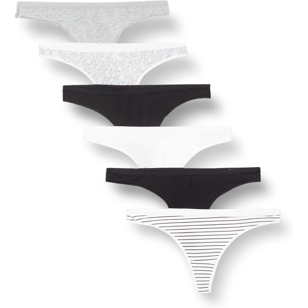 Amazon Essentials Cotton Thong Underwear for Women, Pack of 6(Multicolor/Dots/Heather/Stripe)