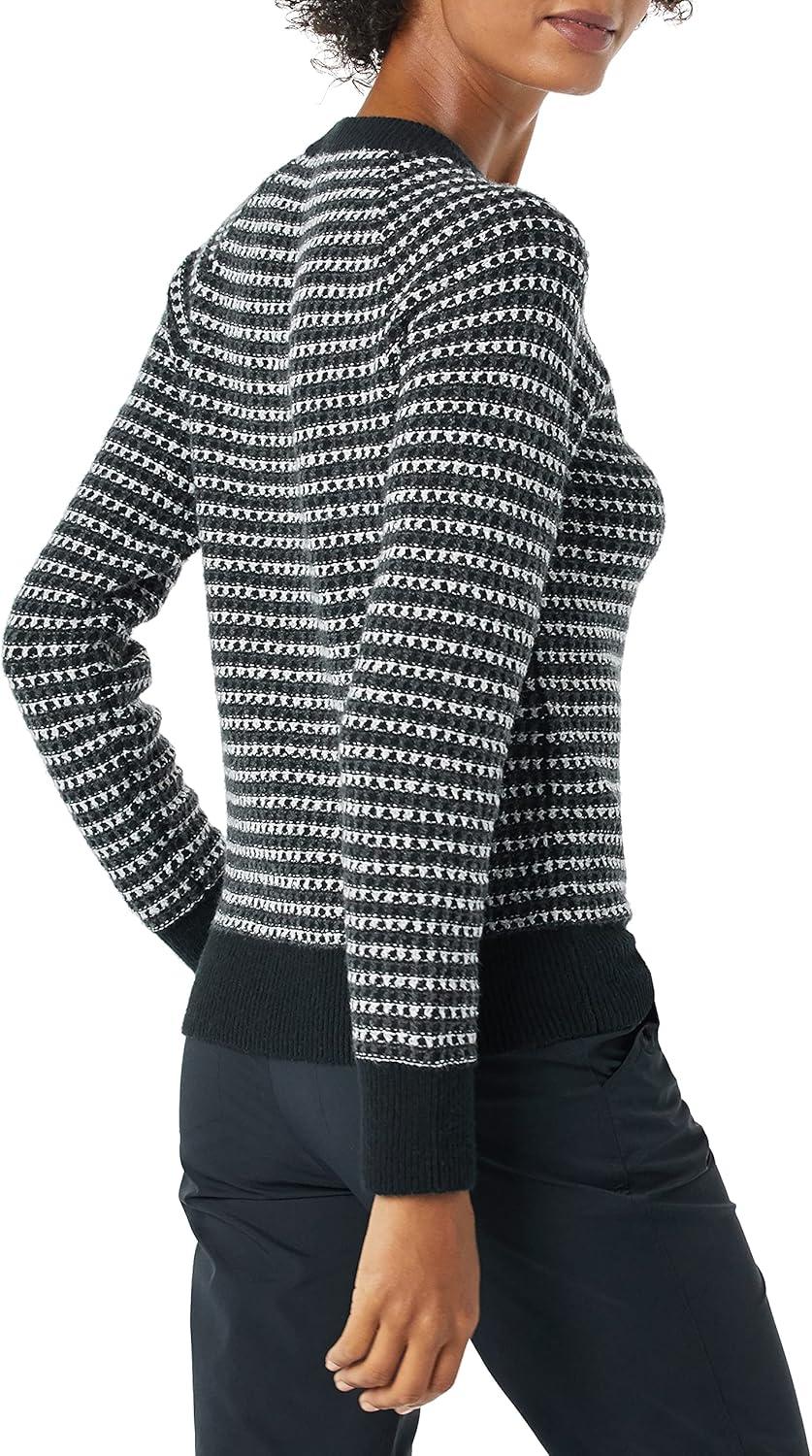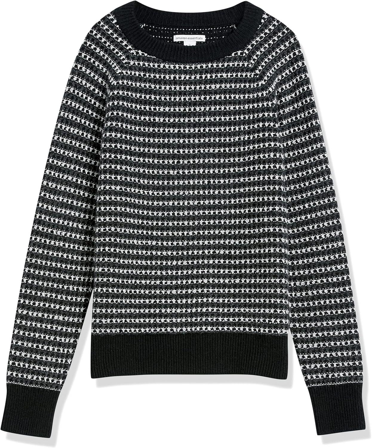 Amazon Essentials Crewneck Sweater for Women, Soft-Touch(Black Charcoal White Stripe)