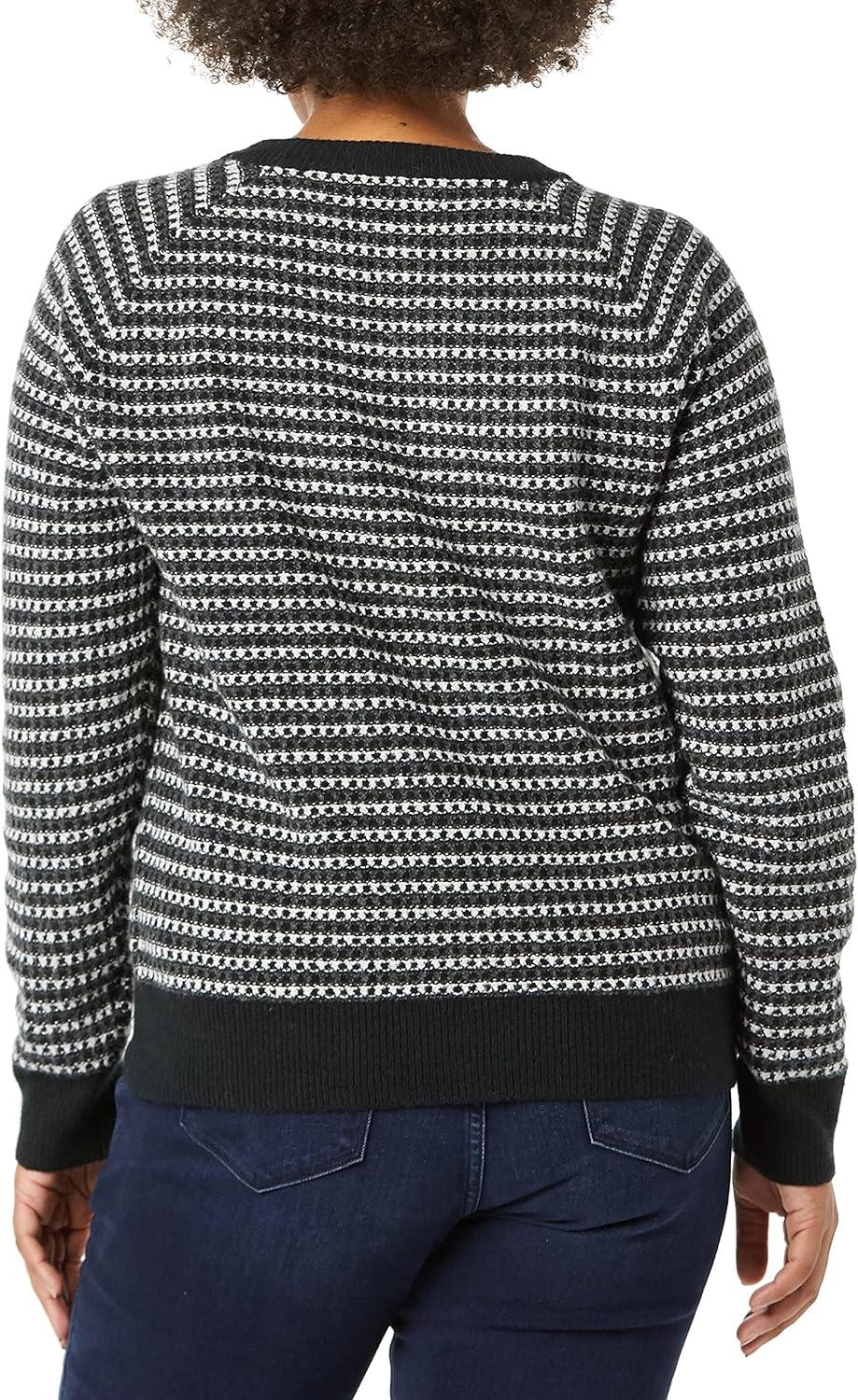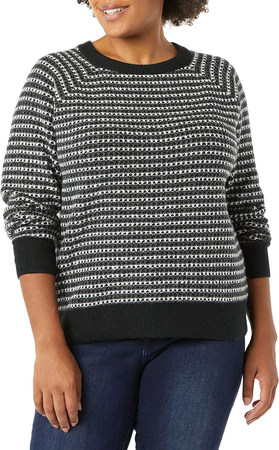 Amazon Essentials Crewneck Sweater for Women, Soft-Touch(Black Classic Fairisle)