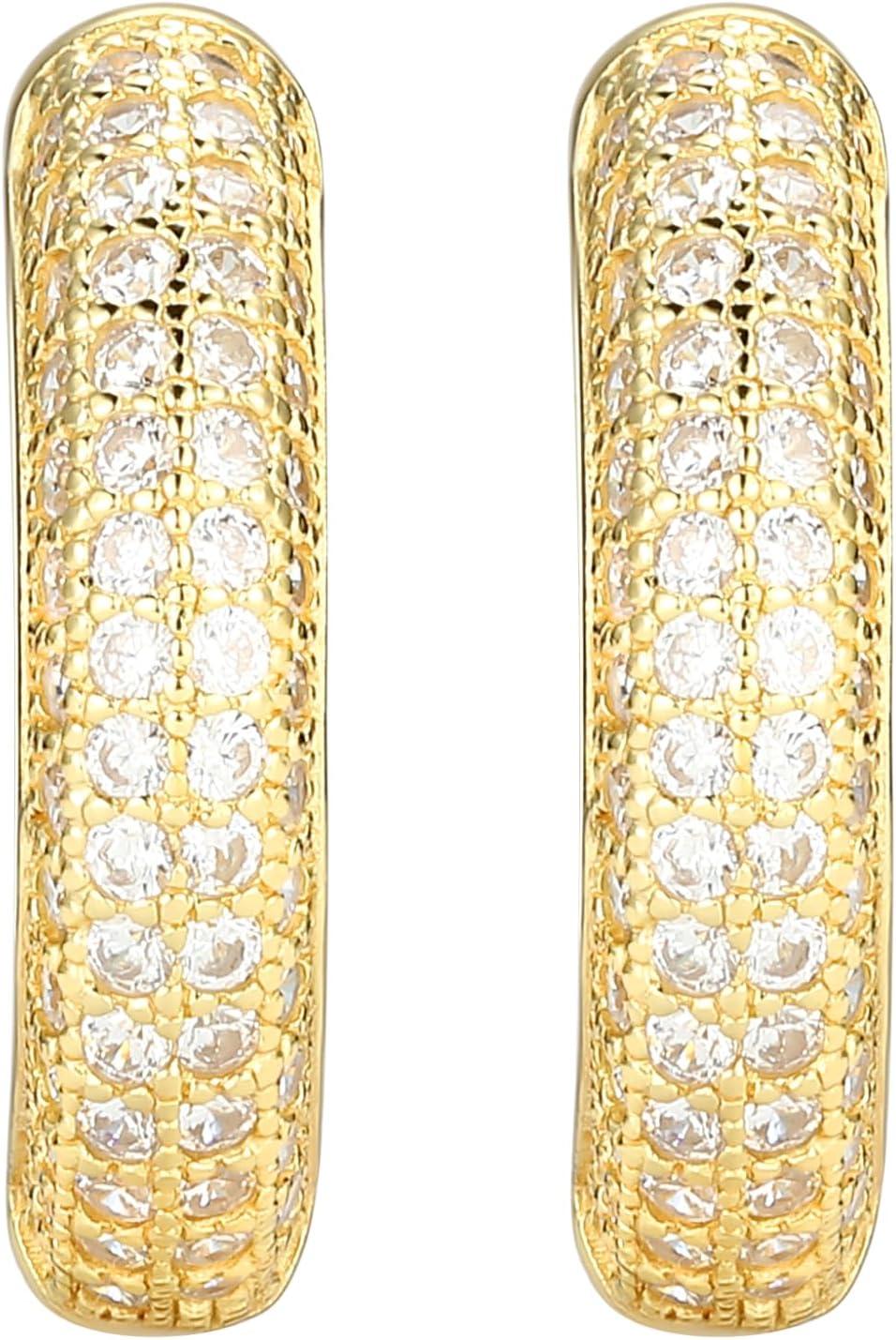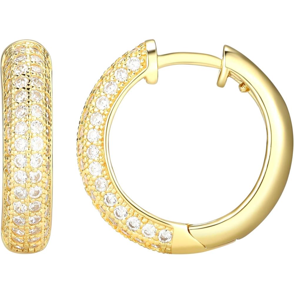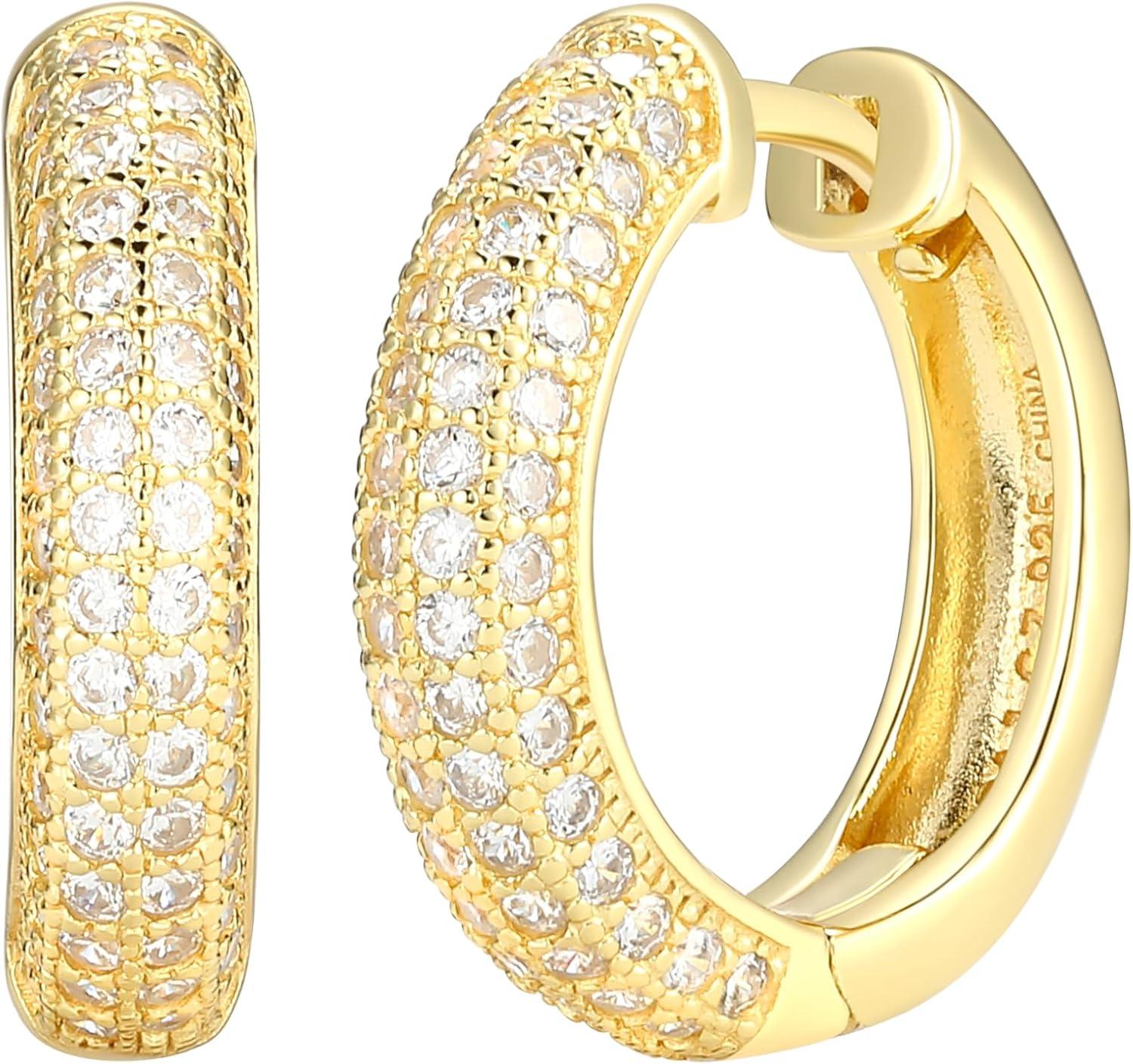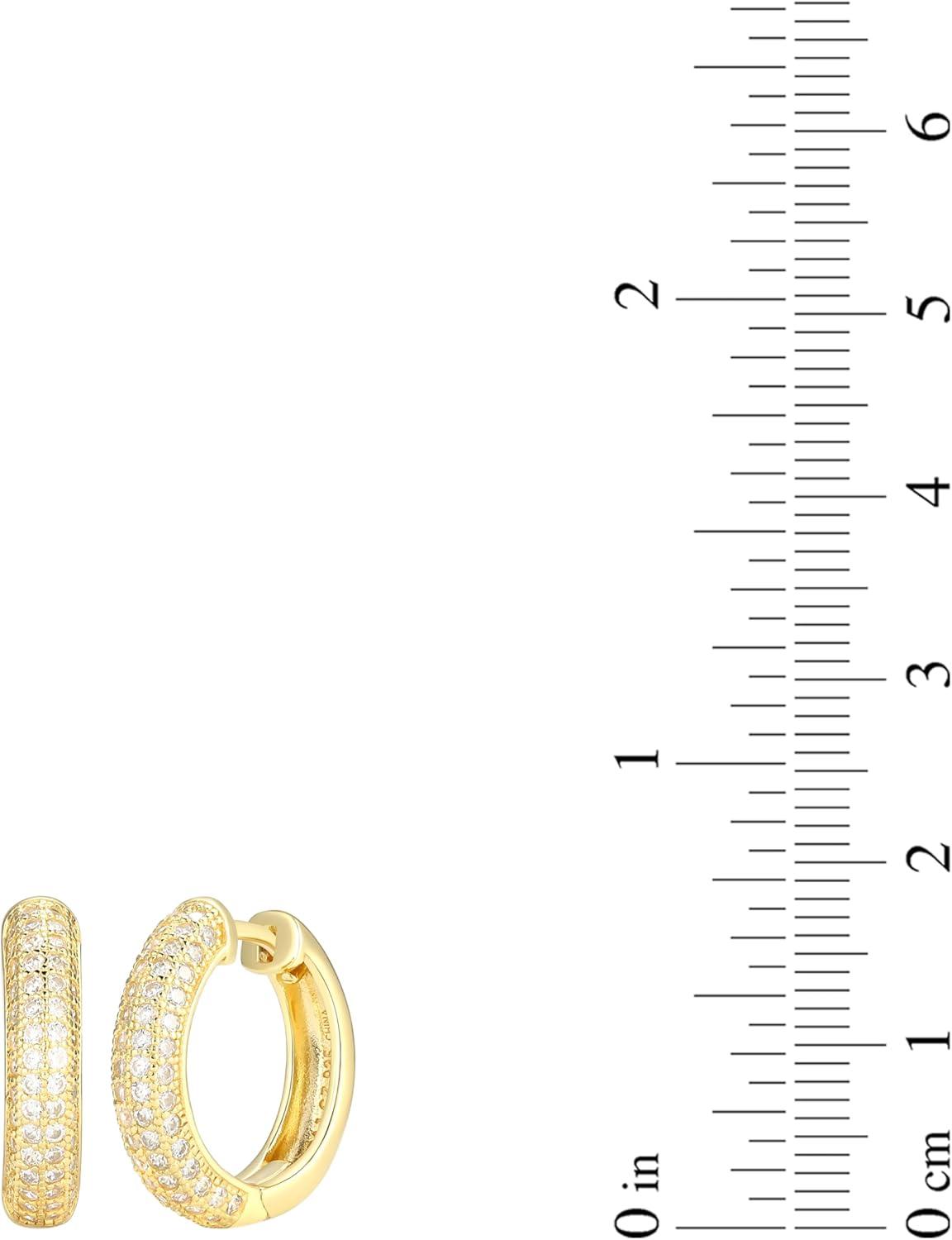 These dainty cubic zirconia pave hinged hoop earrings are designed for elegance and ease, feature a secure click closure. Crafted in 18k yellow gold plated sterling silver and is hypoallergenic, nickel and lead free.