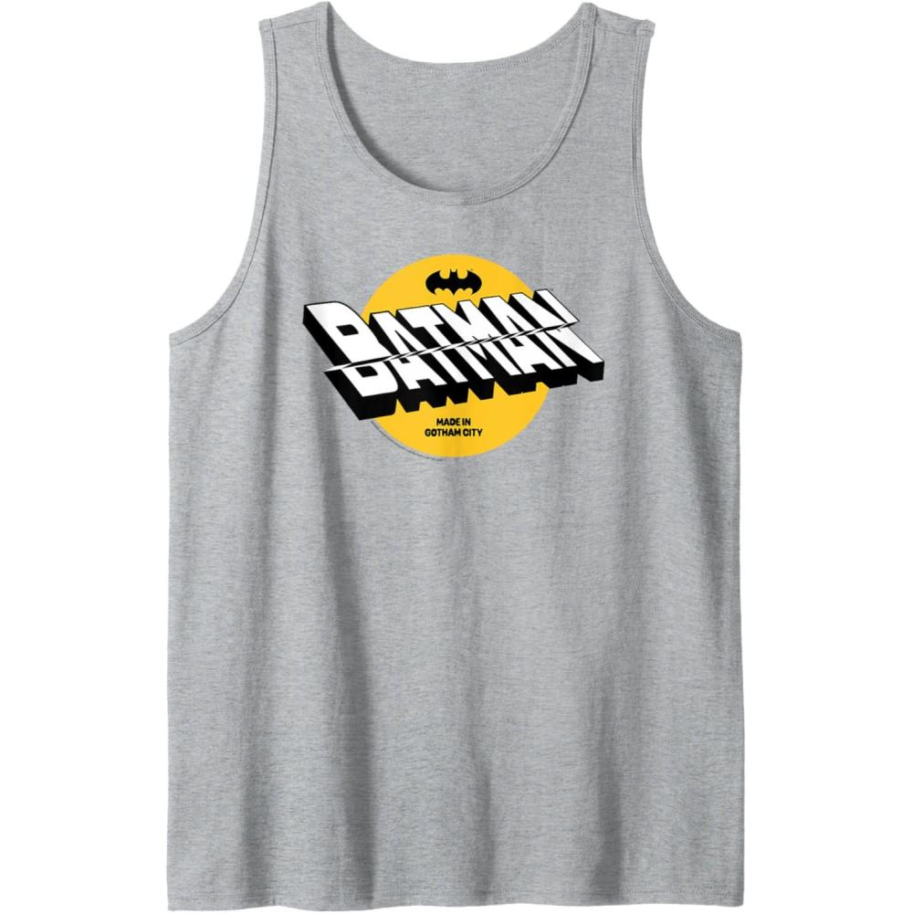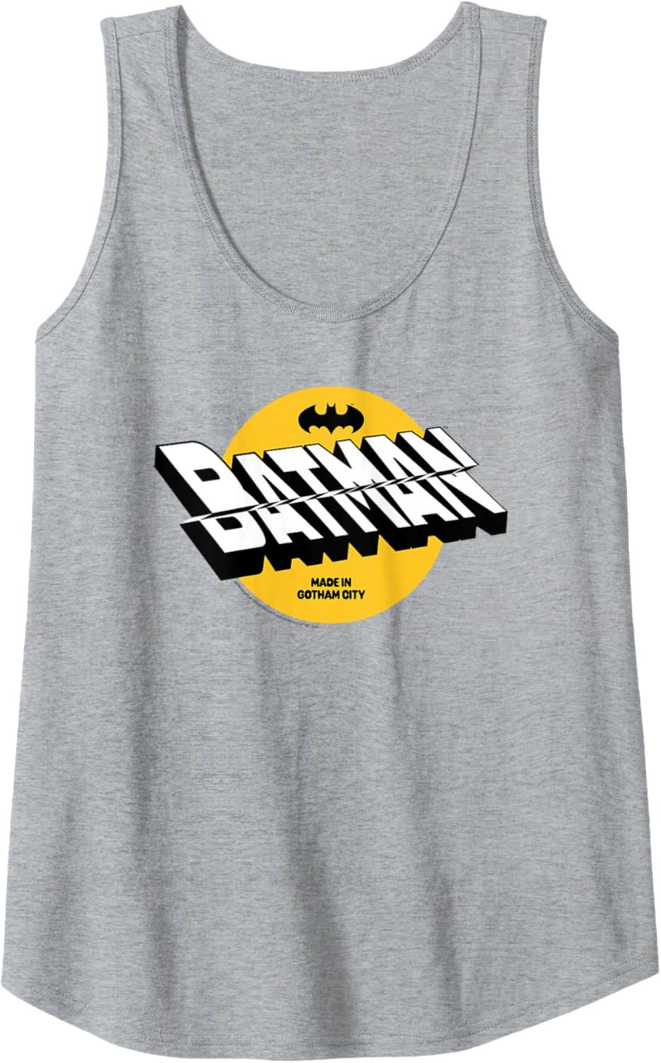 Amazon Essentials DC Comics Batman Circle 3D Shifted Logo Tank Top(Heather Grey)
