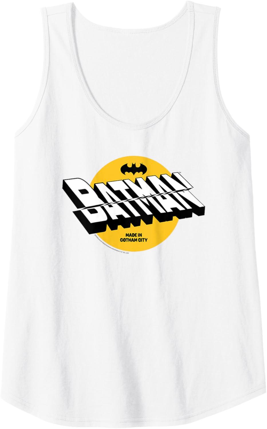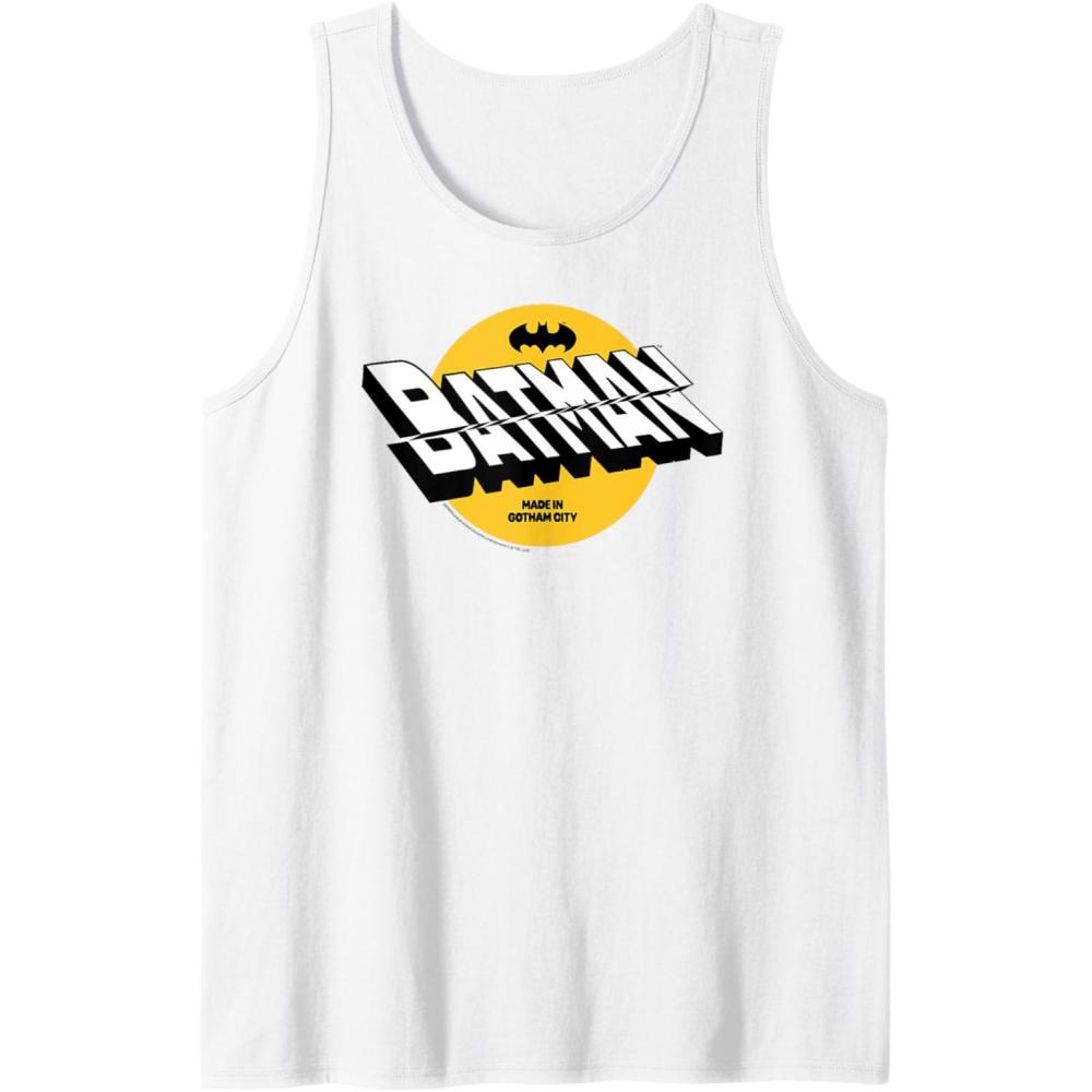 Amazon Essentials DC Comics Batman Circle 3D Shifted Logo Tank Top(White)