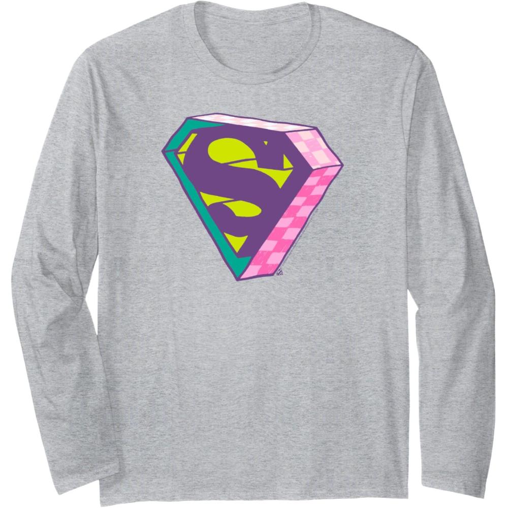 Amazon Essentials DC Comics Superman Bright Checkerboard 3D Logo Long Sleeve T-Shirt(Heather Grey)