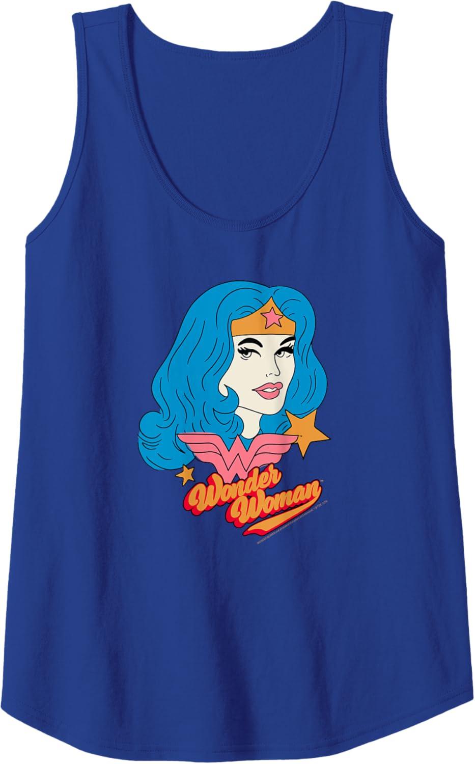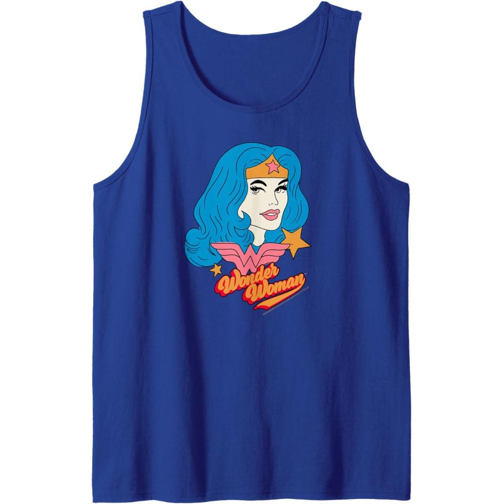 Amazon Essentials DC Comics Wonder Woman Comic Portrait Tank Top(Royal Blue)