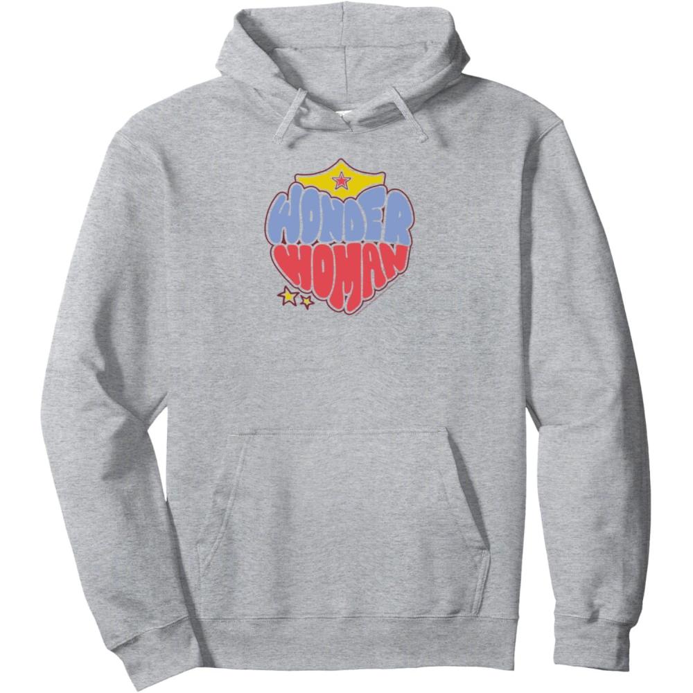 Amazon Essentials DC Comics Wonder Woman Heart Shaped Logo Pullover Hoodie(Heather Grey)
