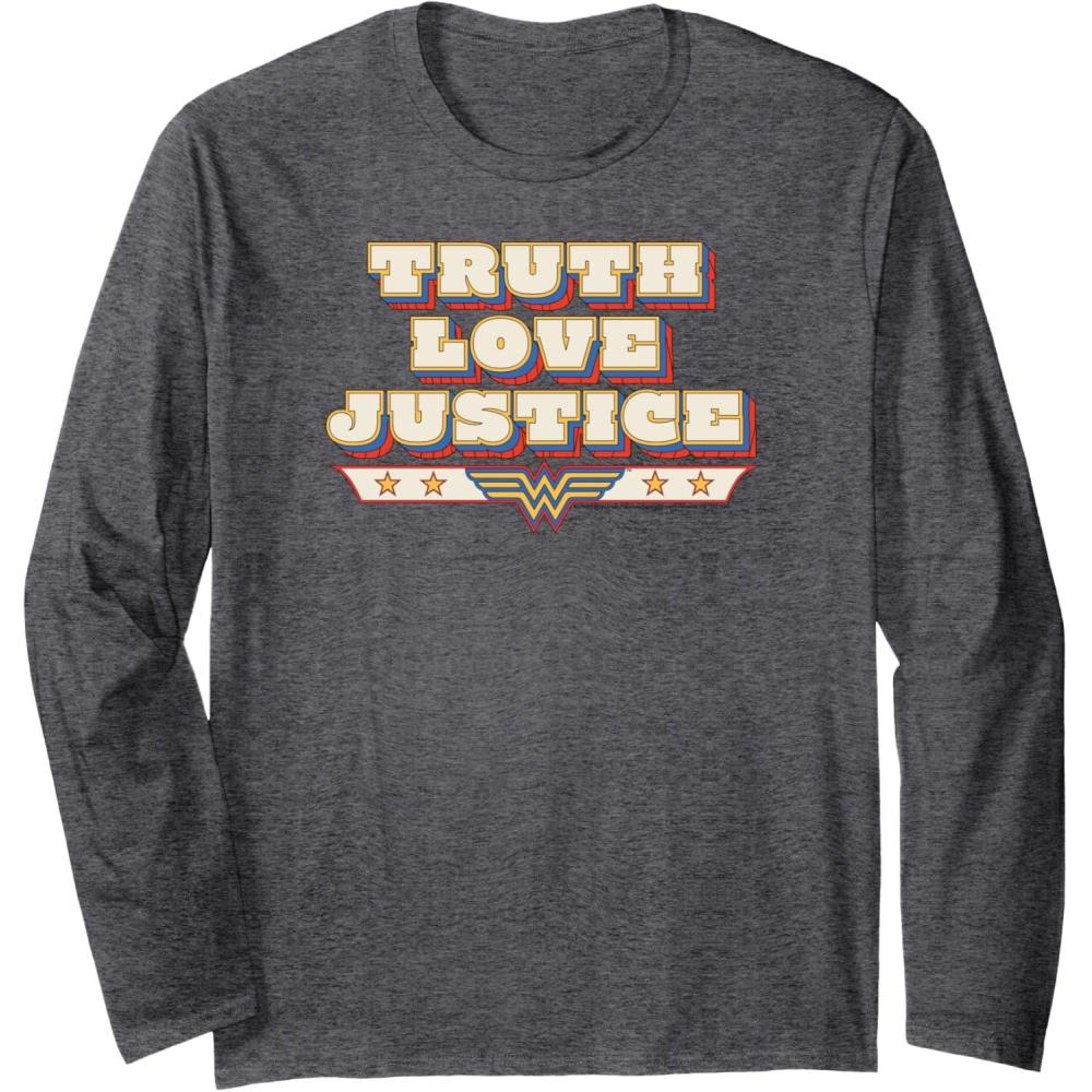 Amazon Essentials DC Comics Wonder Woman Truth Love Justice Long Sleeve T-Shirt(Dark Heather Grey)