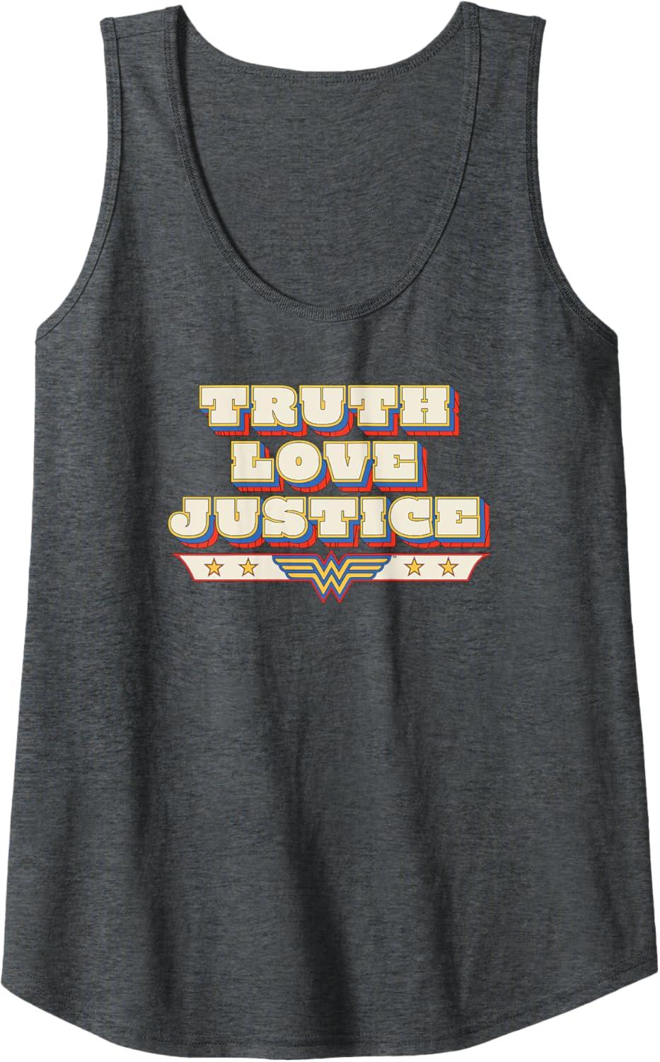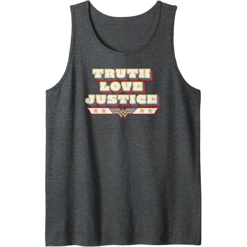 Amazon Essentials DC Comics Wonder Woman Truth Love Justice Tank Top(Dark Heather Grey)