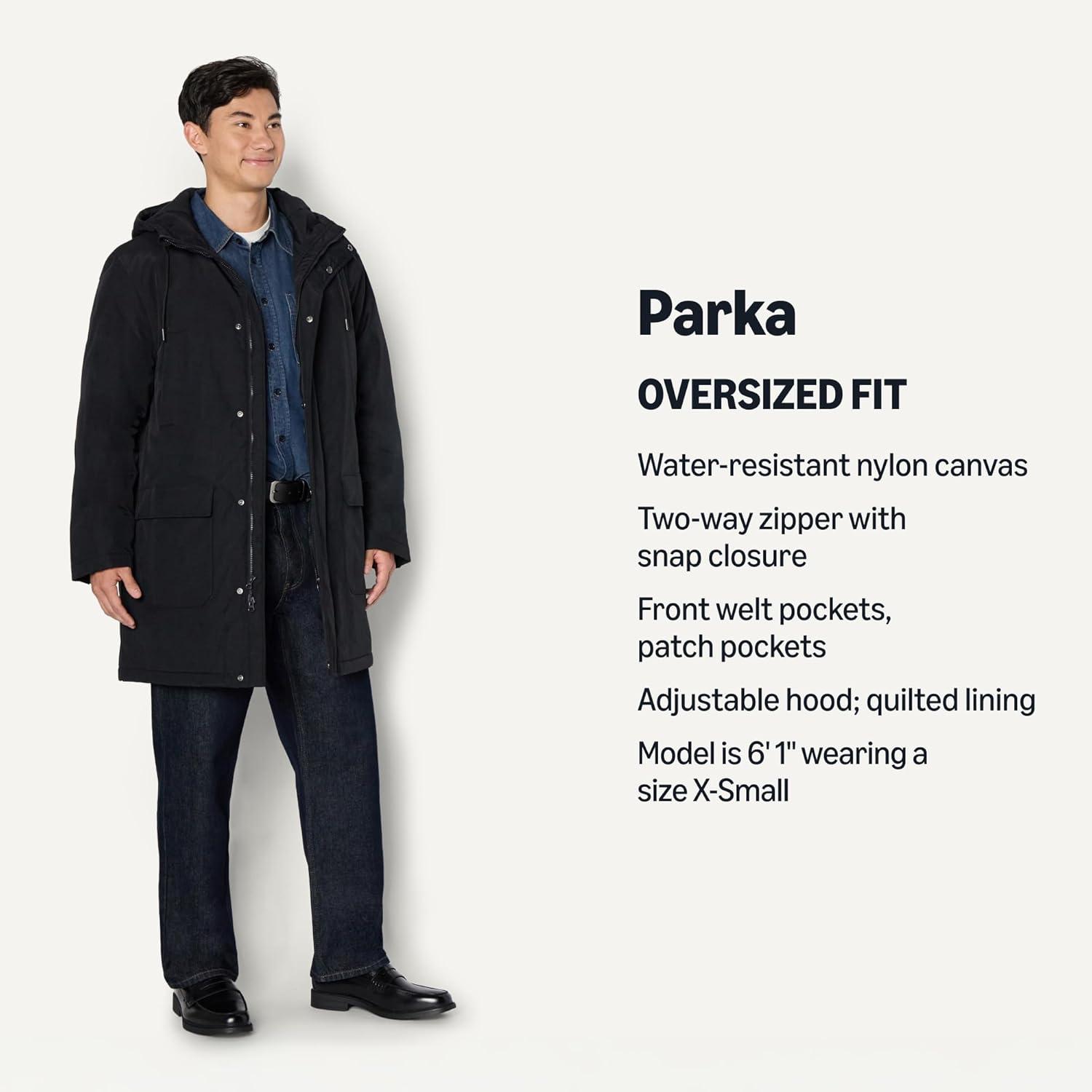 Amazon Essentials (Demi’s Pick) Men’s Modern Oversized-Fit Heavyweight Parka Jacket(Black)