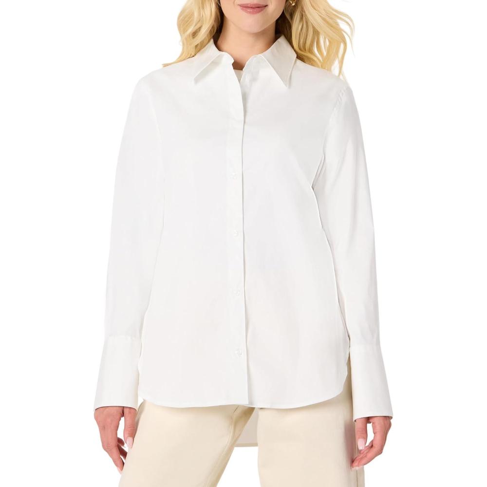 Amazon Essentials (Demi’s Pick) Women’s Oversized-Fit Cotton Stretch Poplin Button-Down Dress Shirt(Bright White)