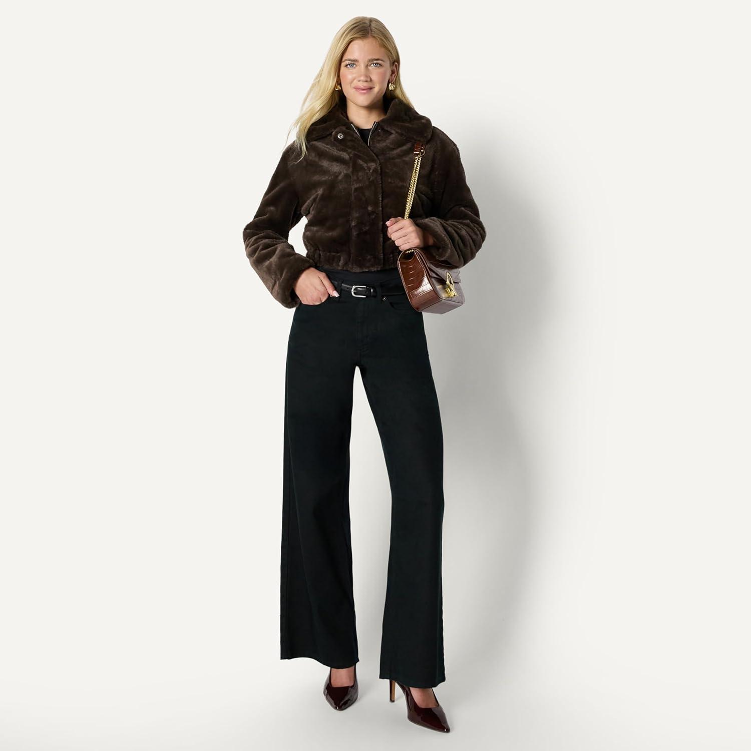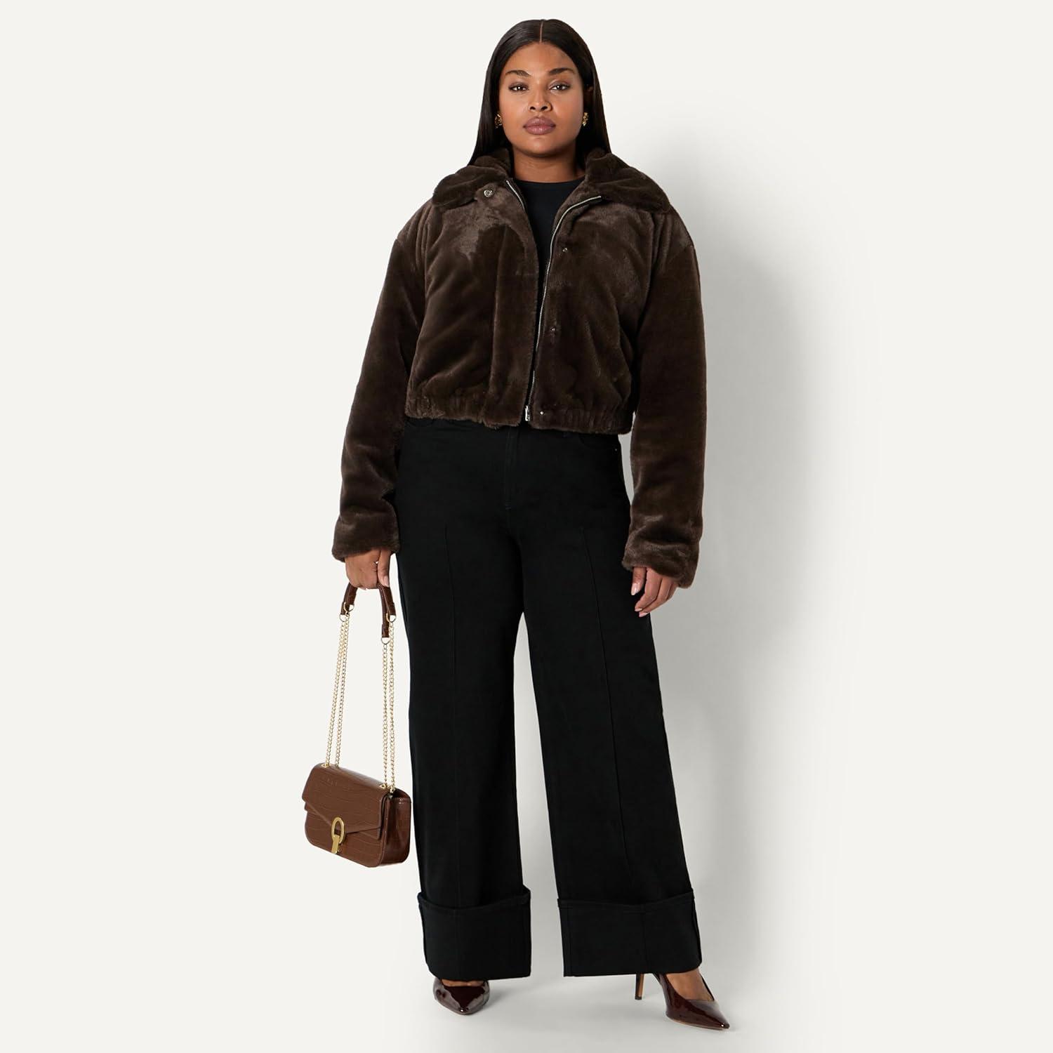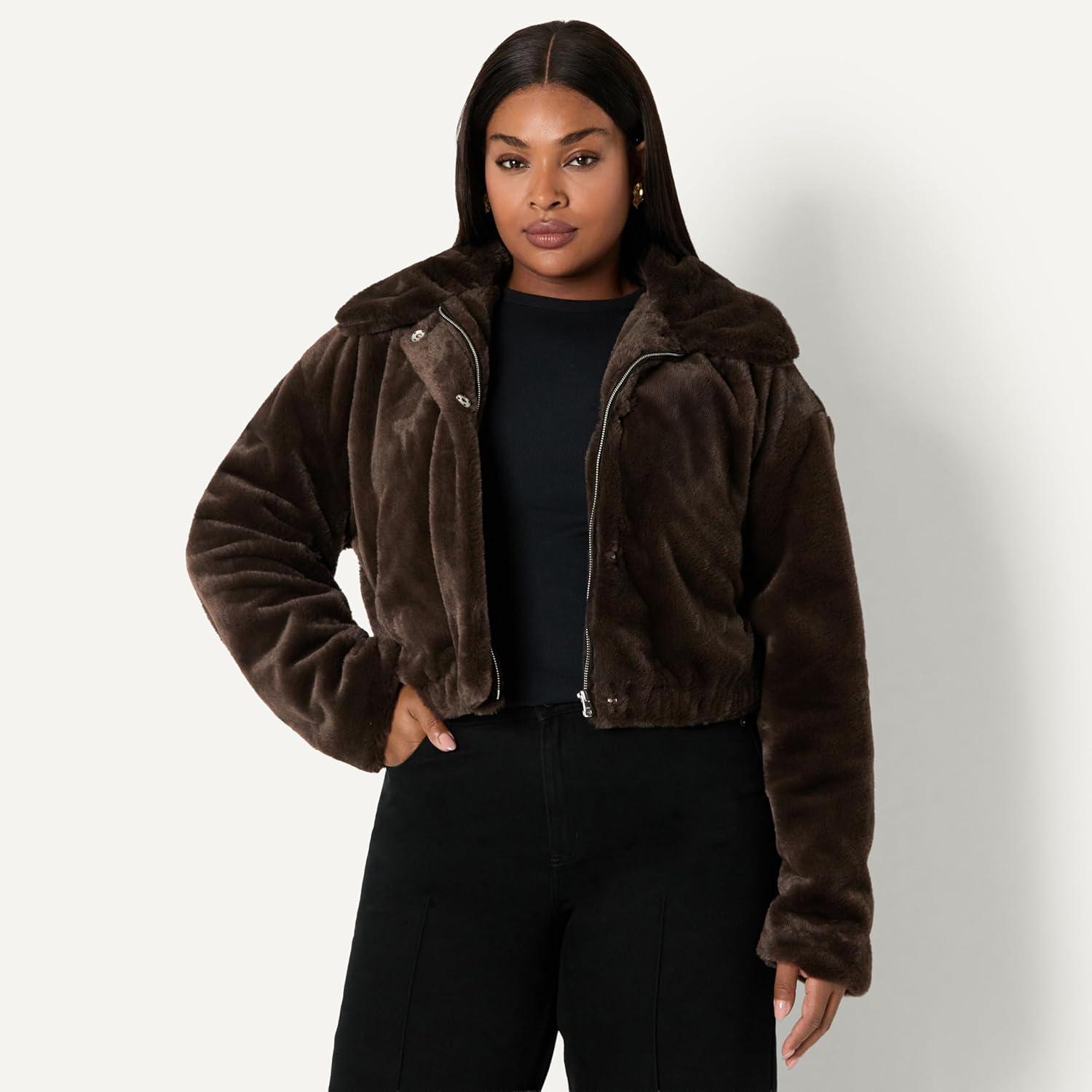 Amazon Essentials (Demi’s Pick) Women’s Oversized-Fit Cropped Faux Fur Jacket with Collar(Dark Brown)