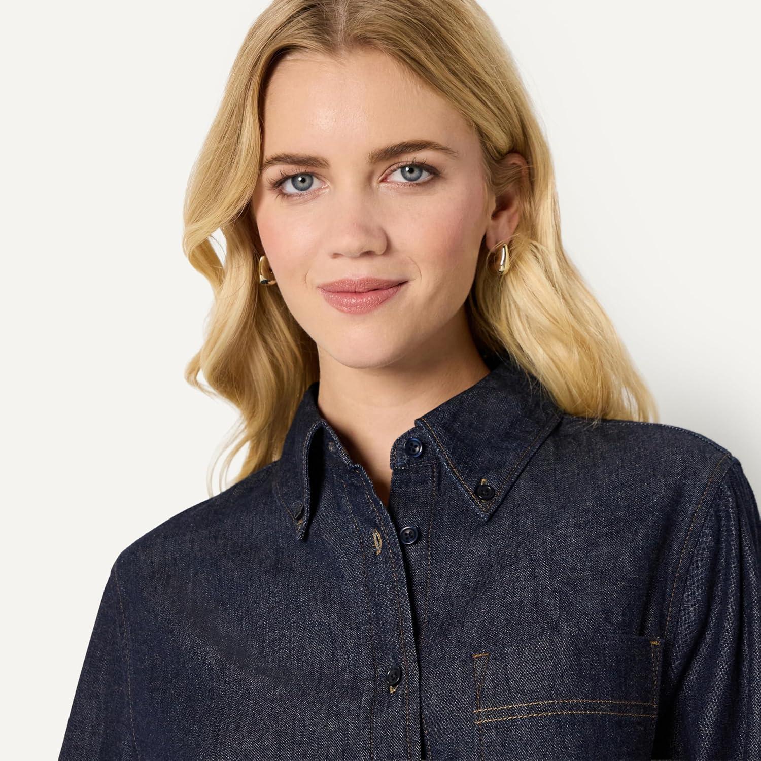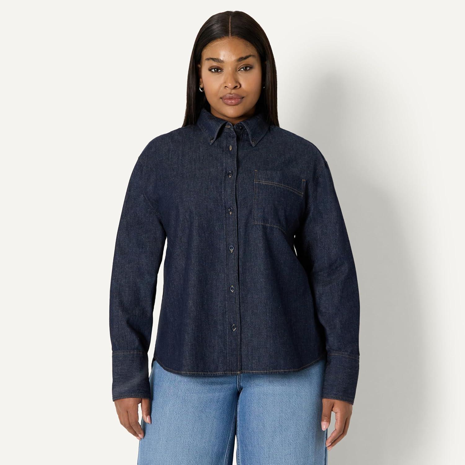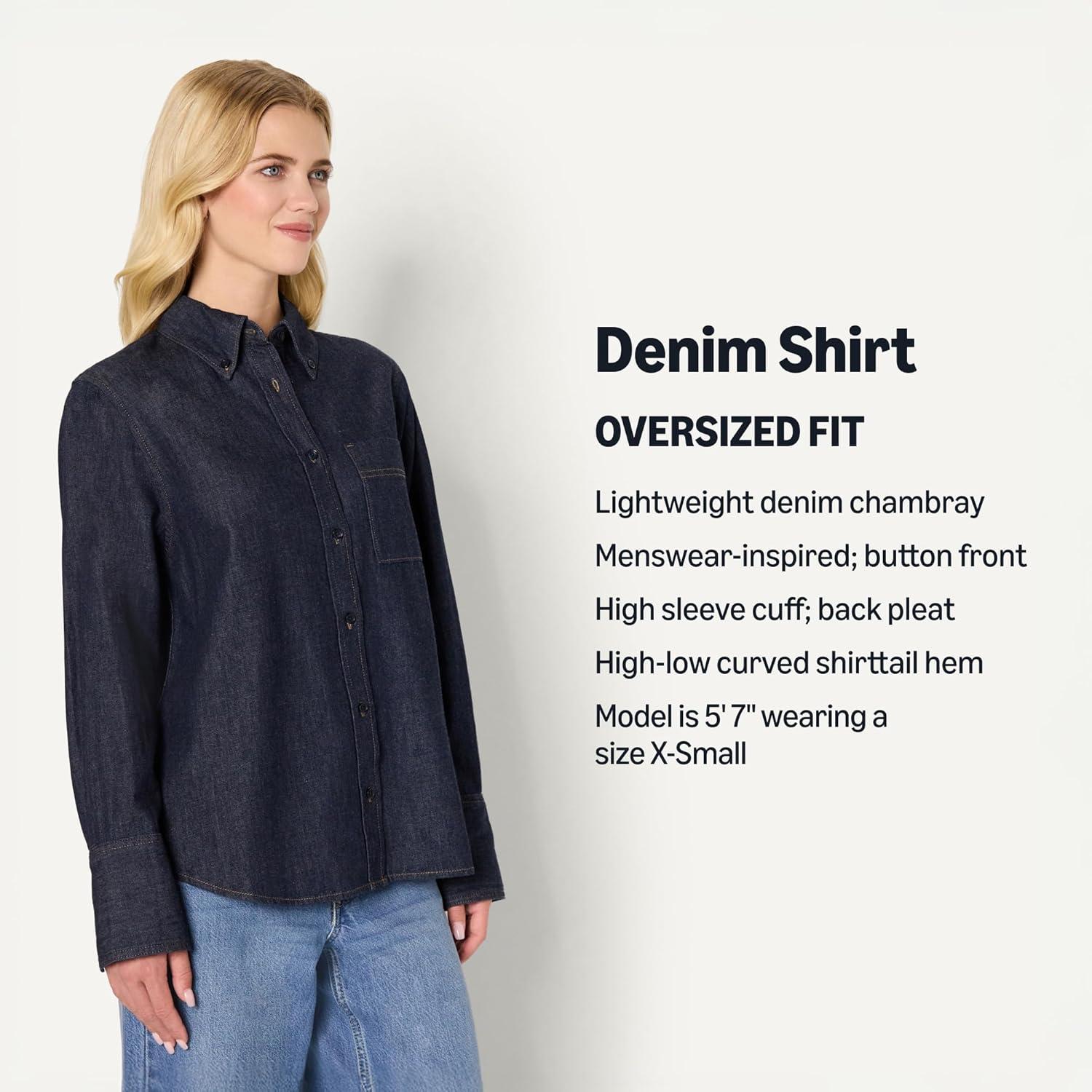 Amazon Essentials (Demi’s Pick) Women’s Oversized-Fit Denim Button-Down Shirt(Rinse)