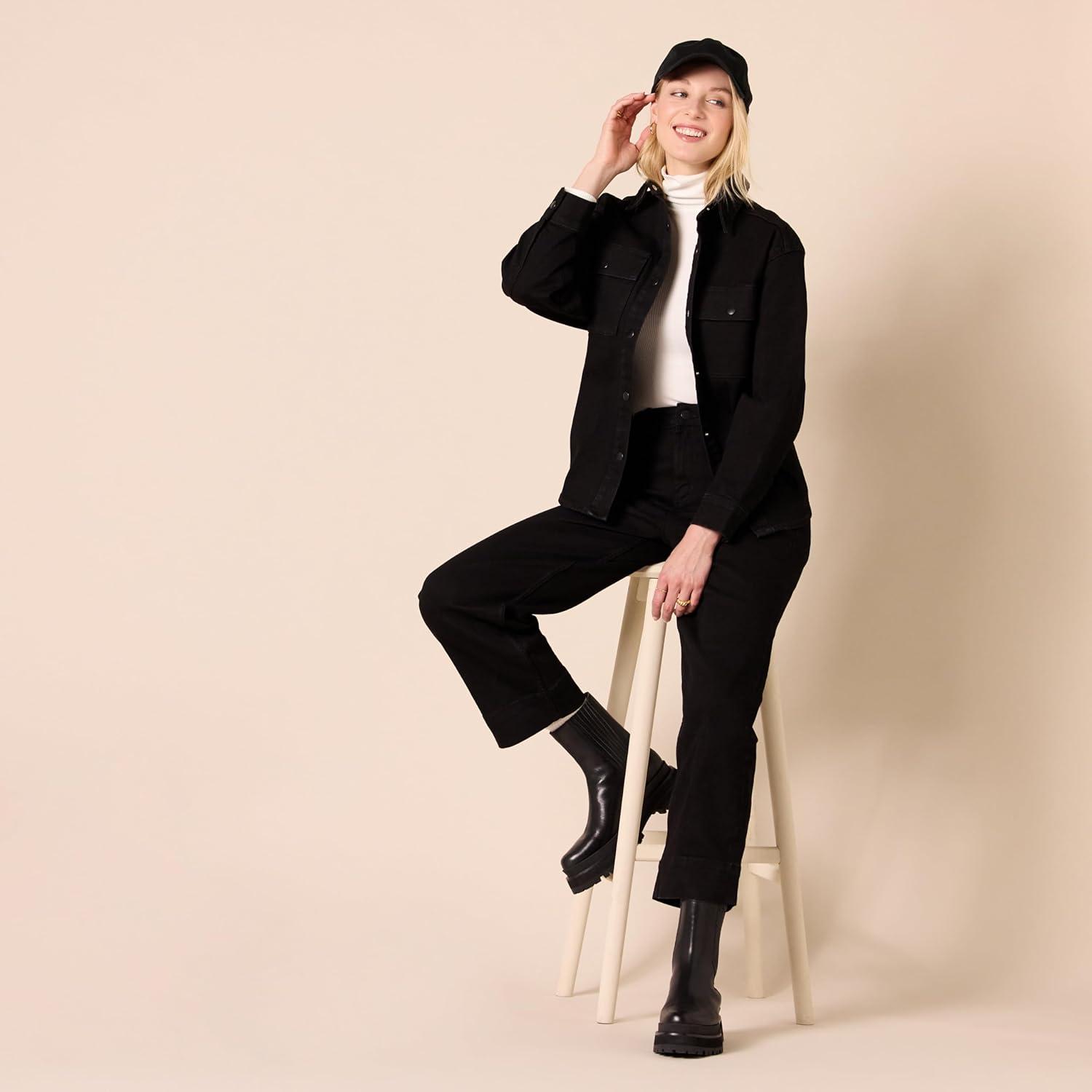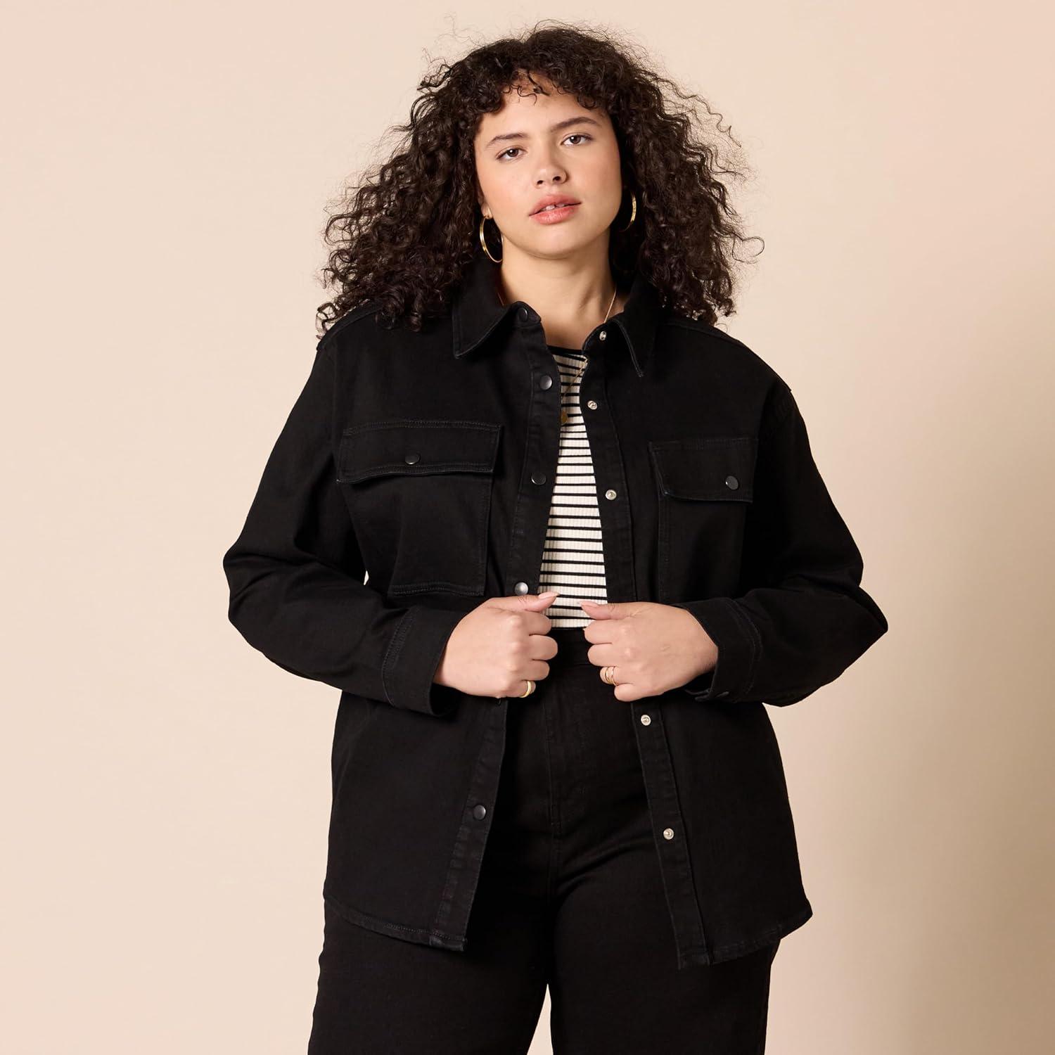 Amazon Essentials (Demi’s Pick) Women’s Oversized-Fit Heavyweight Denim Shirt Jacket(Black)