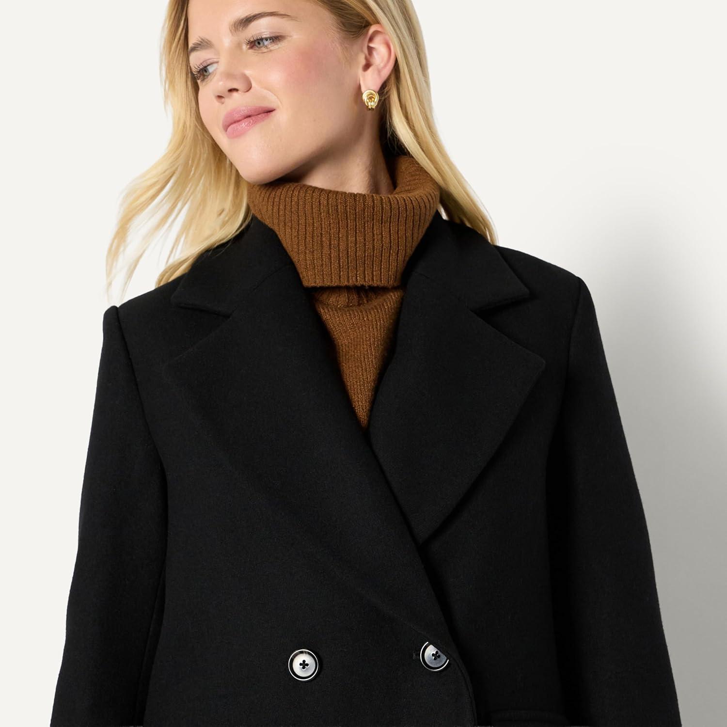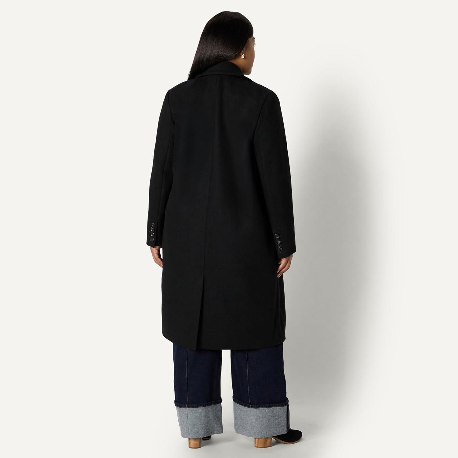 Amazon Essentials (Demi’s Pick) Women’s Regular-Fit Double Breasted Wool-Blend Longline Coat(Black)