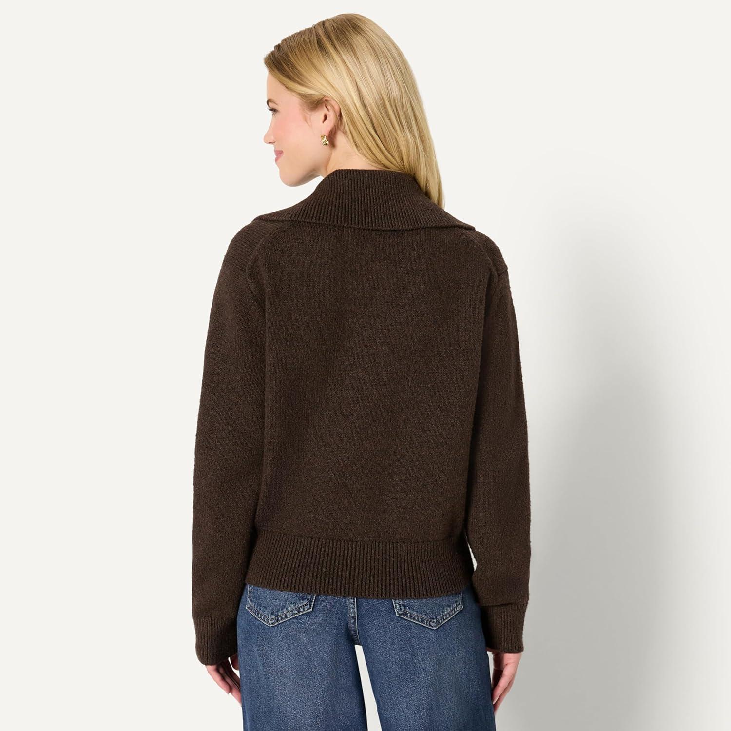 Amazon Essentials (Demi's Pick) Women's Relaxed-Fit Button Collar Sweater(Chocolate Heather)