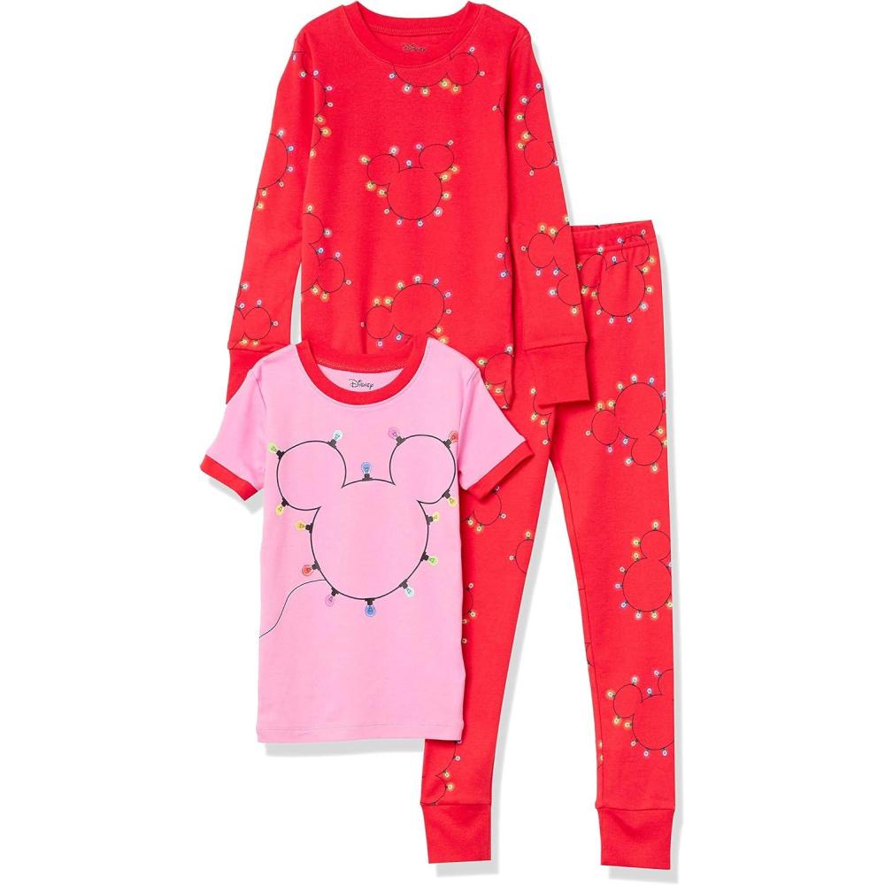 Amazon Essentials Disney | Marvel | Star Wars Babies, Toddlers, and Girls’ Pajama Set(3-piece Holiday Mickey Icon Lights)