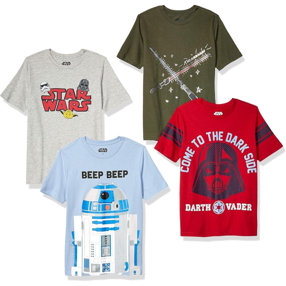 Amazon Essentials Disney | Marvel | Star Wars Boys and Toddlers’ Short-Sleeve T-Shirts (Previously Spotted Zebra), Multipacks(Blue Star Wars Beep Beep/Green/Grey Star Wars/Red Darth Vader)
