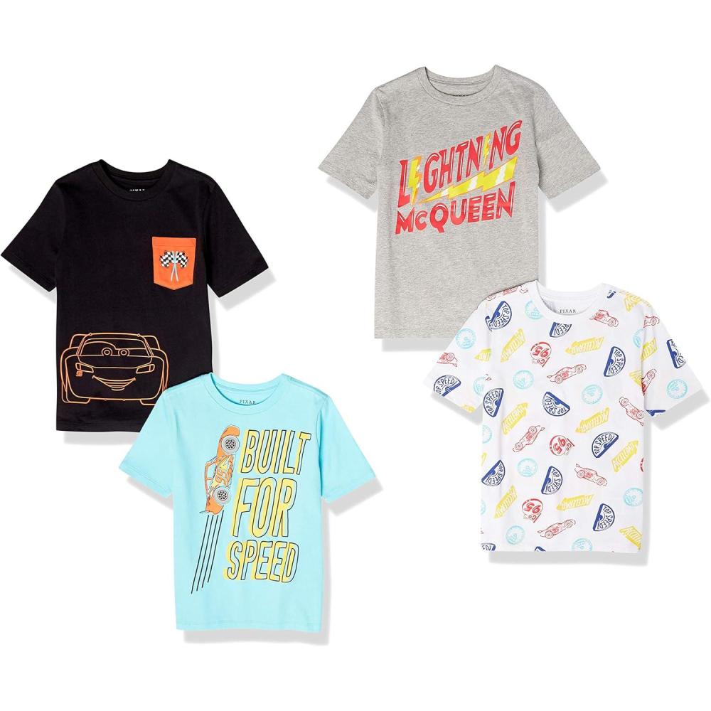 Amazon Essentials Disney | Marvel | Star Wars Boys and Toddlers' Short-Sleeve T-Shirts (Previously Spotted Zebra), Multipacks(Cars/Lightning Mcqueen)