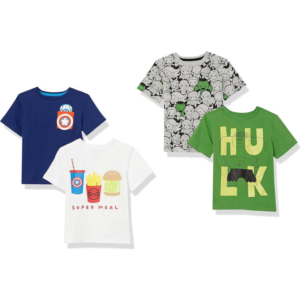 Amazon Essentials Disney | Marvel | Star Wars Boys and Toddlers' Short-Sleeve T-Shirts (Previously Spotted Zebra), Multipacks(Marvel Hulk)