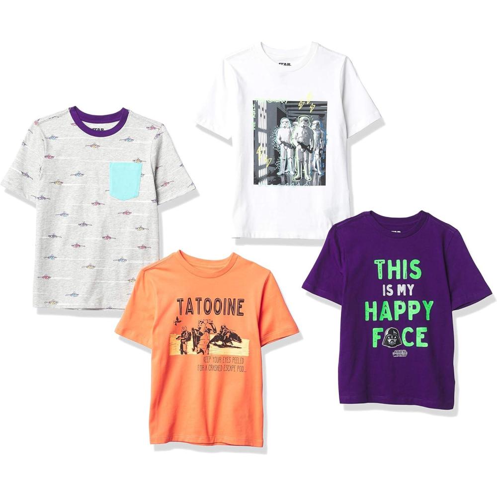 Amazon Essentials Disney | Marvel | Star Wars Boys and Toddlers’ Short-Sleeve T-Shirts (Previously Spotted Zebra), Multipacks(Star Wars Move Along)