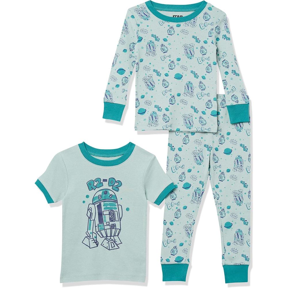 Amazon Essentials Disney | Marvel | Star Wars Boys and Toddlers' Snug-Fit Cotton Pajama Sleepwear Sets, Multipacks(3-piece Star Wars Green R2-d2 Set)