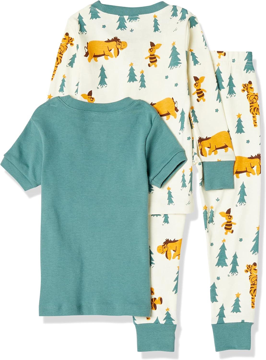 Amazon Essentials Disney | Marvel | Star Wars Boys and Toddlers' Snug-Fit Cotton Pajama Sleepwear Sets, Multipacks(Pooh Holiday Forest - Kids)