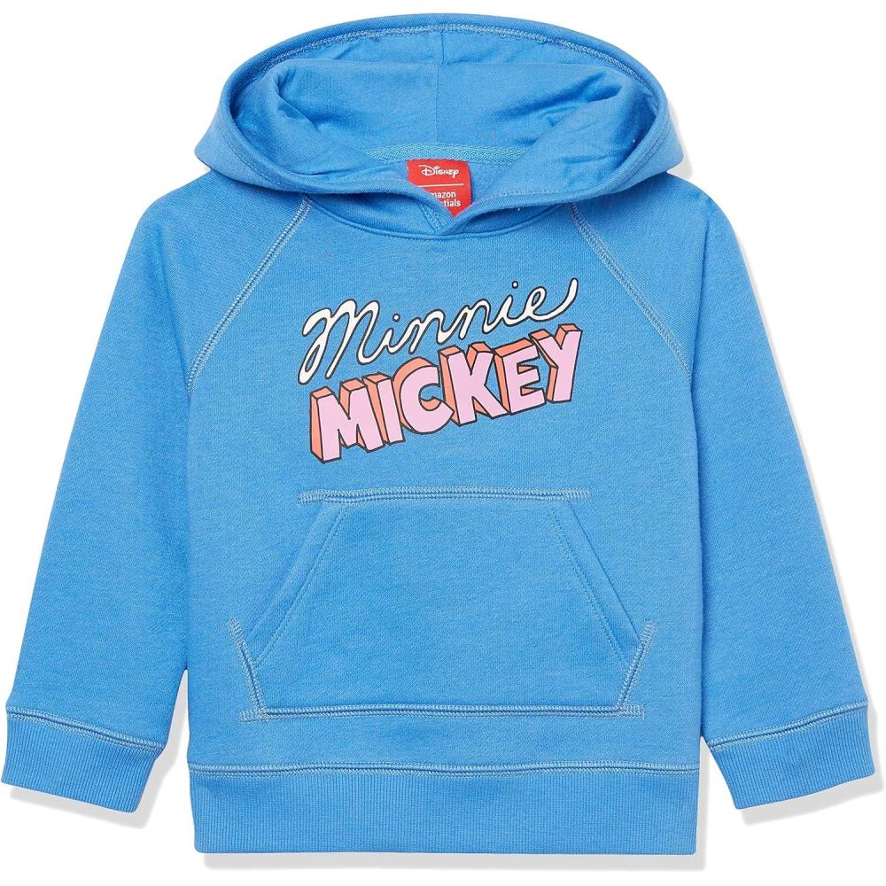 Amazon Essentials Disney | Marvel | Star Wars | Frozen | Princess Girls and Toddlers' Fleece Pullover Hoodie Sweatshirt(Blue Minnie Mickey)