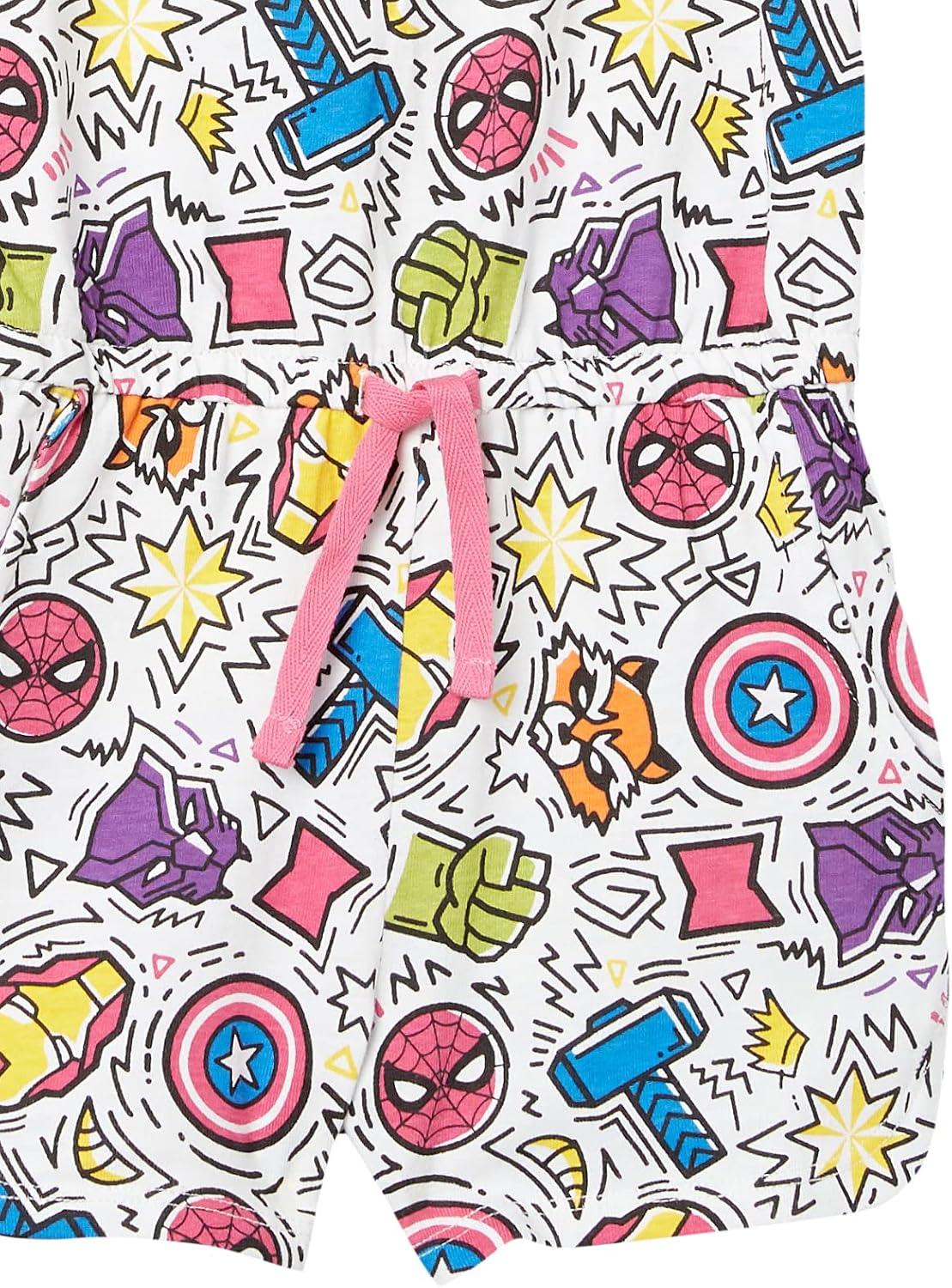 Amazon Essentials Disney | Marvel | Star Wars | Frozen | Princess Girls and Toddlers’ Knit Sleeveless Rompers, Pack of 2(Festive Marvel – Kids)