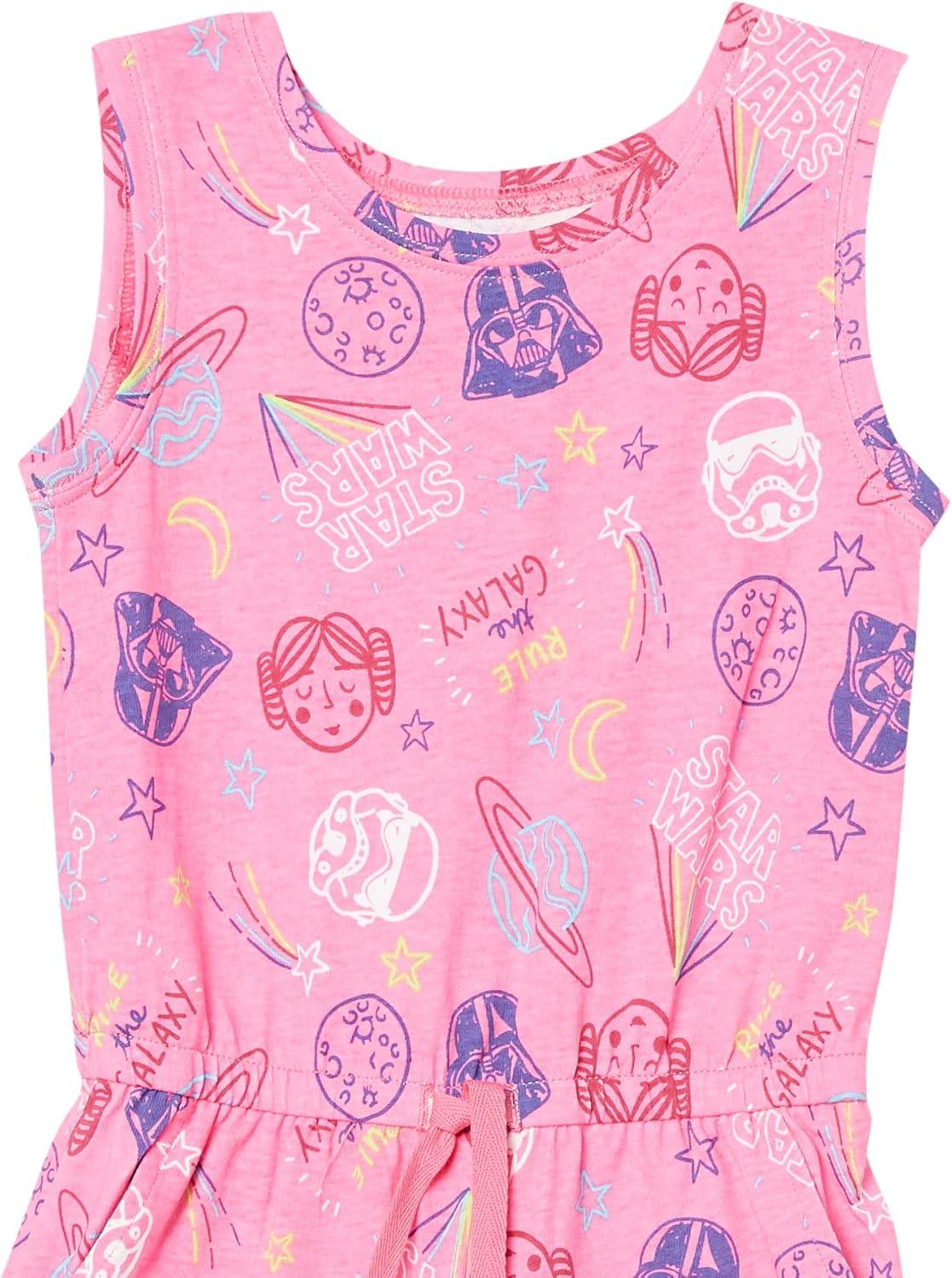 Amazon Essentials Disney | Marvel | Star Wars | Frozen | Princess Girls and Toddlers' Knit Sleeveless Rompers, Pack of 2(Neon Star Wars Child)