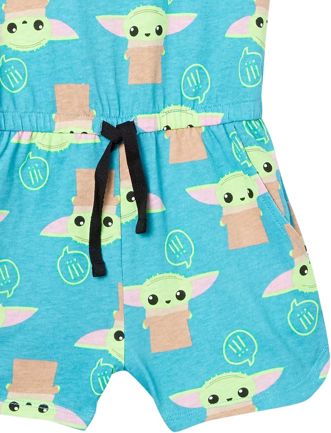 Amazon Essentials Disney | Marvel | Star Wars | Frozen | Princess Girls and Toddlers’ Knit Sleeveless Rompers, Pack of 2(Neon Star Wars Child)