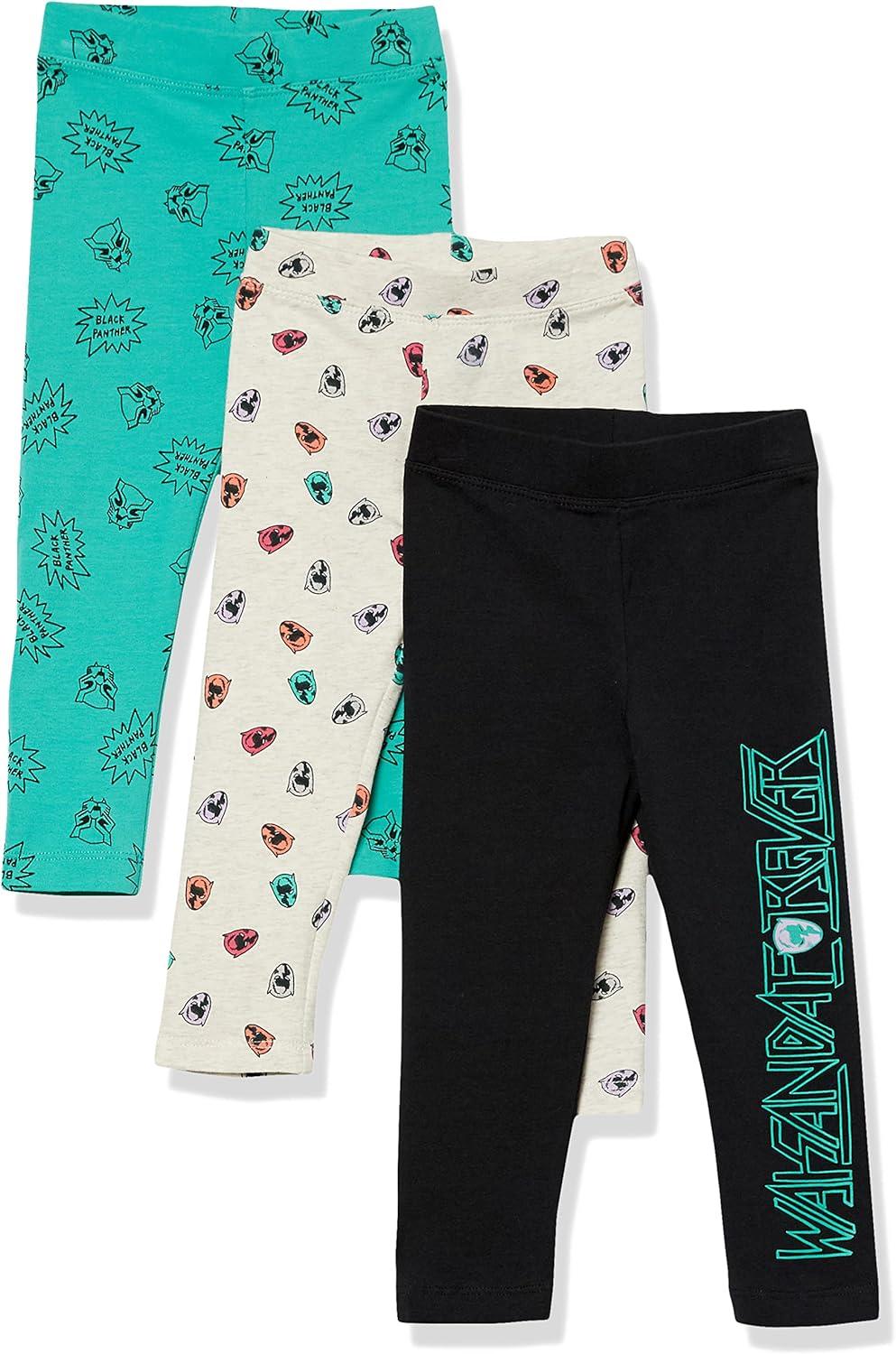 Amazon Essentials Disney | Marvel | Star Wars | Frozen | Princess Girls and Toddlers’ Leggings, Multipacks(Marvel Wakanda Forever)