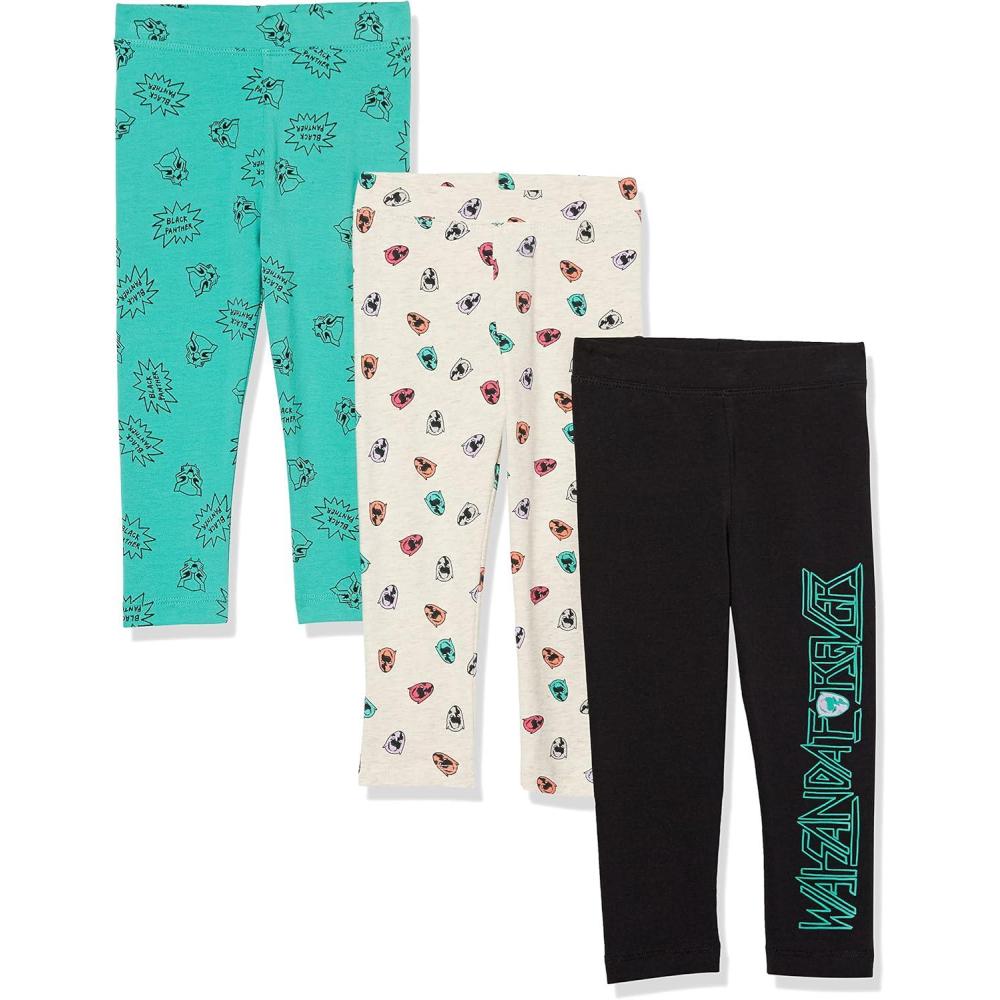 Amazon Essentials Disney | Marvel | Star Wars | Frozen | Princess Girls and Toddlers' Leggings, Multipacks(Marvel Wakanda Forever)