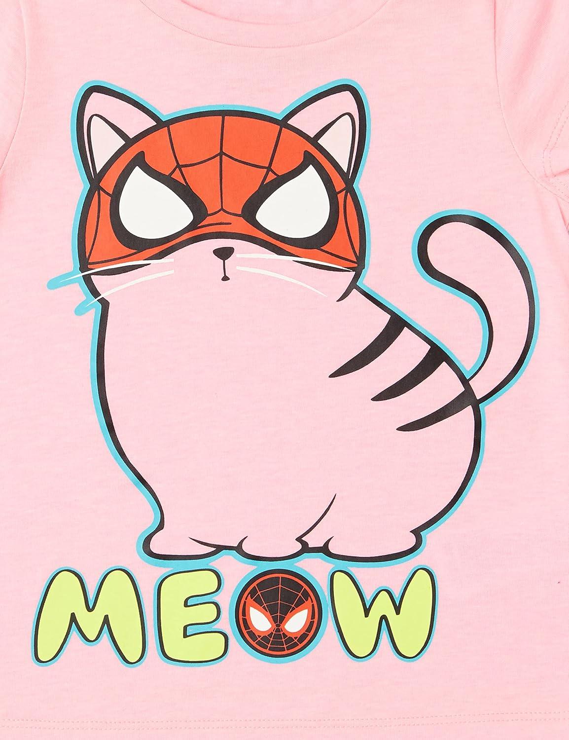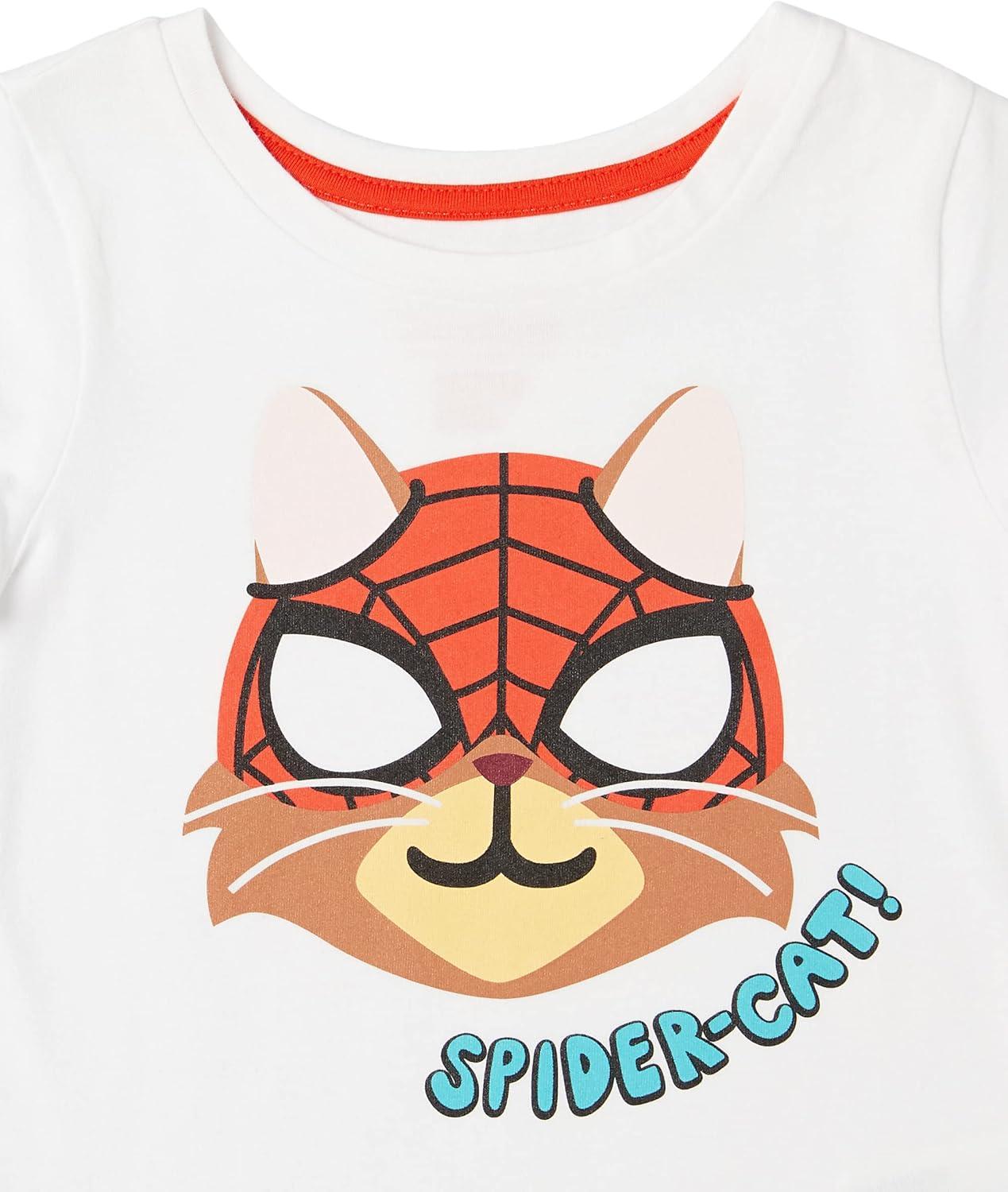 Amazon Essentials Disney | Marvel | Star Wars | Frozen | Princess Girls and Toddlers’ Short-Sleeve T-Shirts, Multipacks(Marvel Spider-cat)