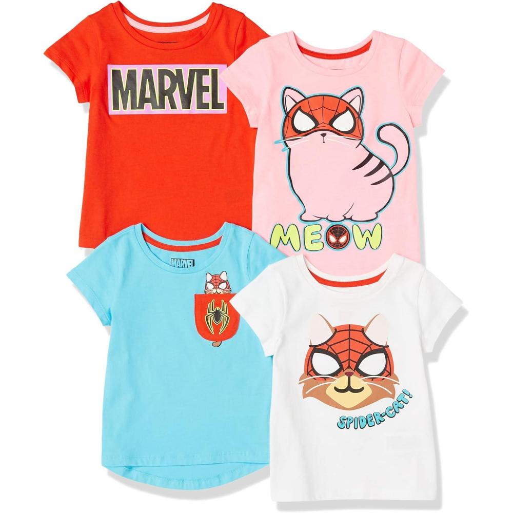 Amazon Essentials Disney | Marvel | Star Wars | Frozen | Princess Girls and Toddlers' Short-Sleeve T-Shirts, Multipacks(Marvel Spider-cat)