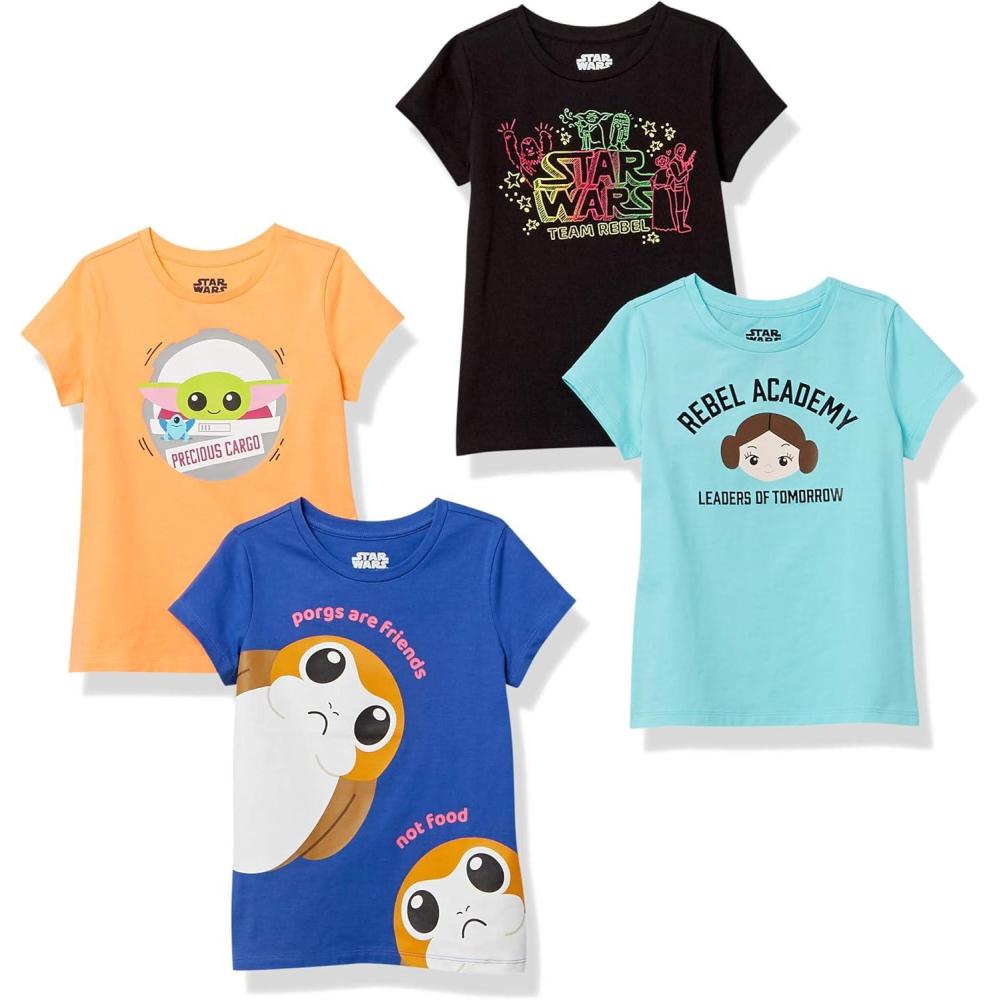 Amazon Essentials Disney | Marvel | Star Wars | Frozen | Princess Girls and Toddlers’ Short-Sleeve T-Shirts, Multipacks(Star Wars Rebel)