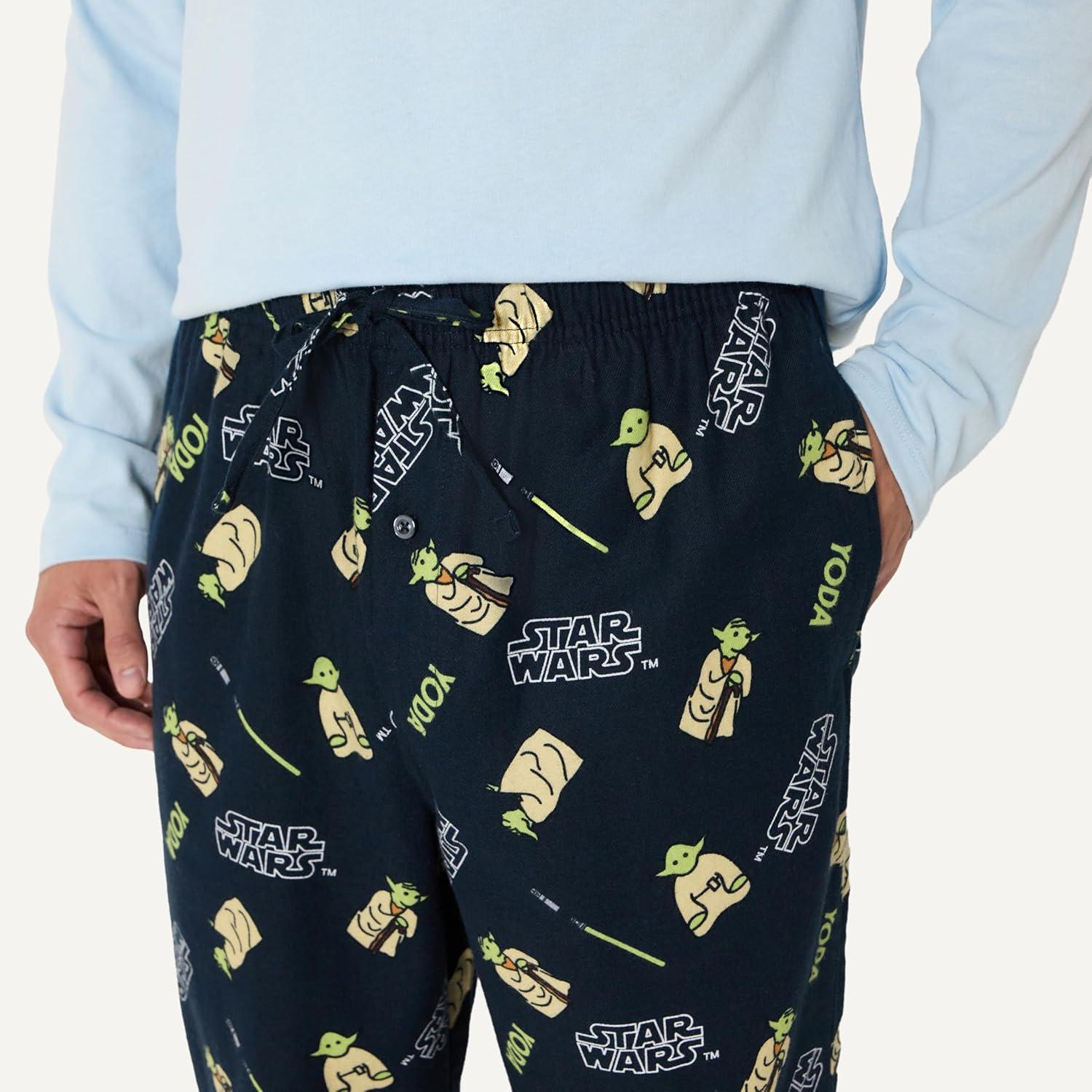 Amazon Essentials Disney | Marvel | Star Wars Men’s Flannel Pajama Sleep Sets(Jedi Master)