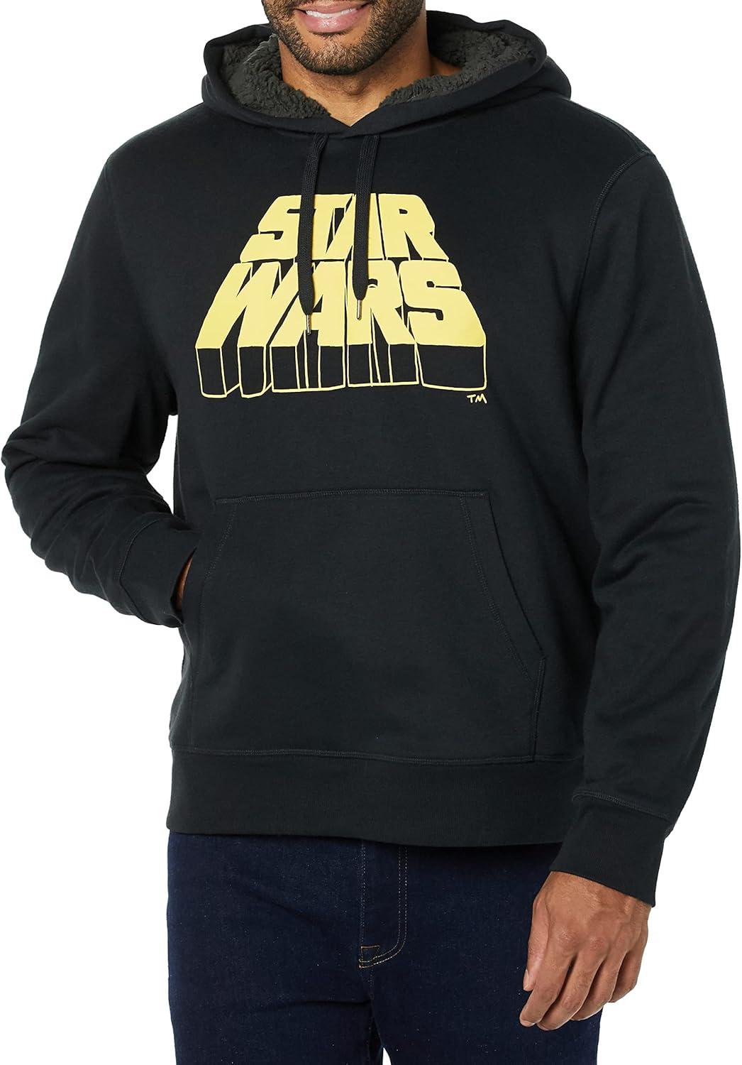 Amazon Essentials Disney | Marvel | Star Wars Men’s Sherpa-Lined Pullover Hoodie Sweatshirt(Star Wars Logo)