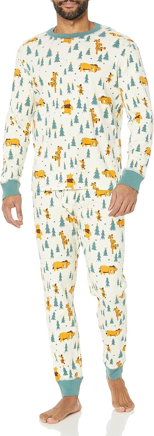 Amazon Essentials Disney | Marvel | Star Wars Men’s Snug-Fit Pajama Sleep Sets(Pooh Holiday Forest – Mens Snug Fit)