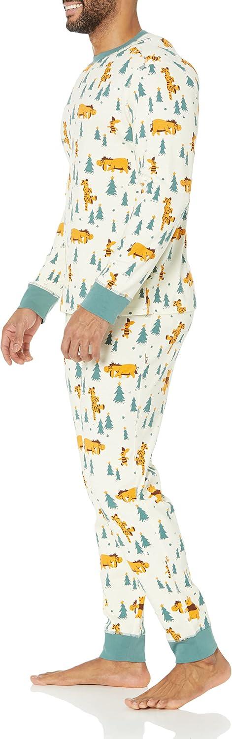 Amazon Essentials Disney | Marvel | Star Wars Men's Snug-Fit Pajama Sleep Sets(Pooh Holiday Forest - Mens Snug Fit)