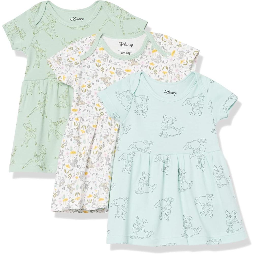 Amazon Essentials Disney | Marvel | Star Wars | Princess Babies, Toddlers, and Girls’ Dresses, Pack of 3(Bambi Nature)