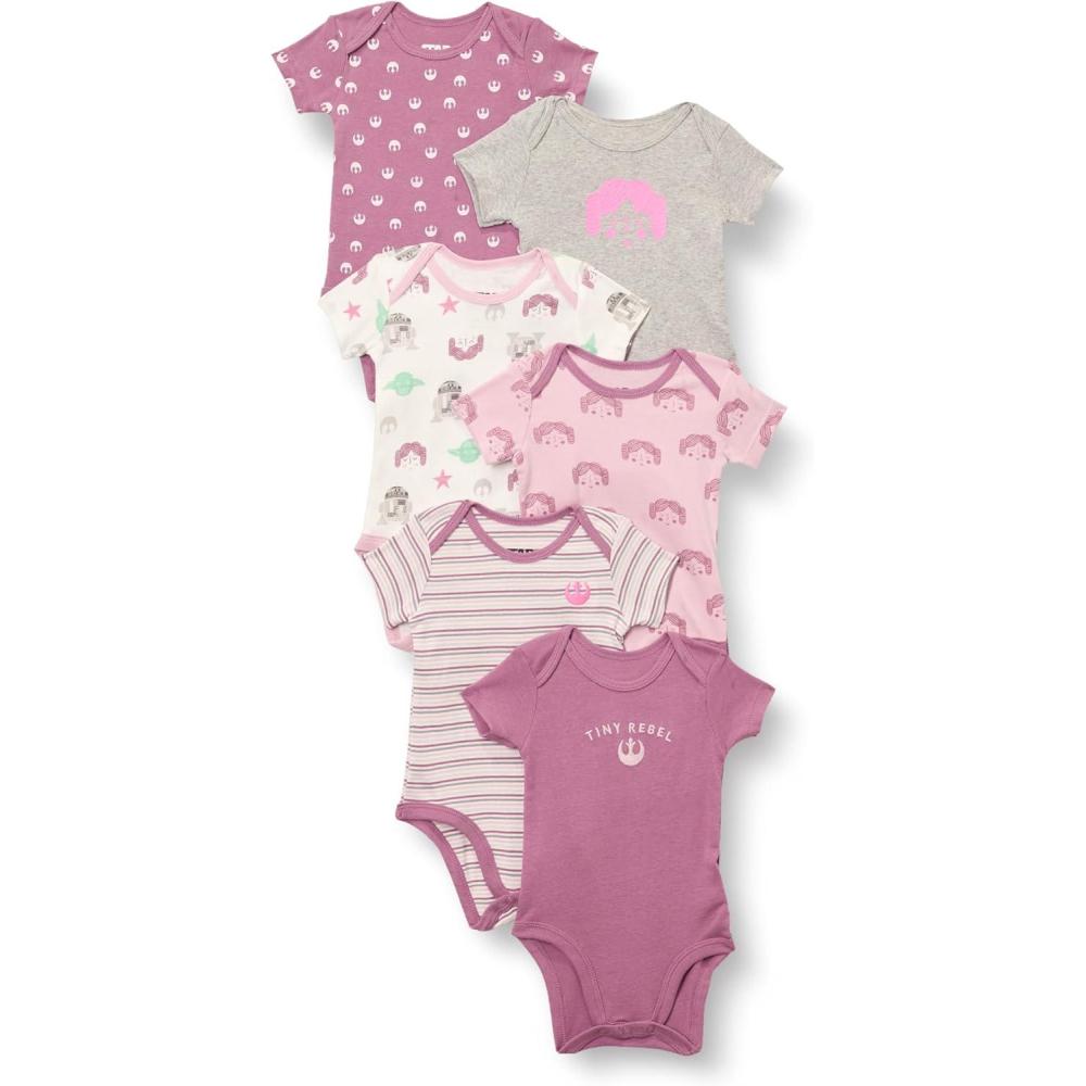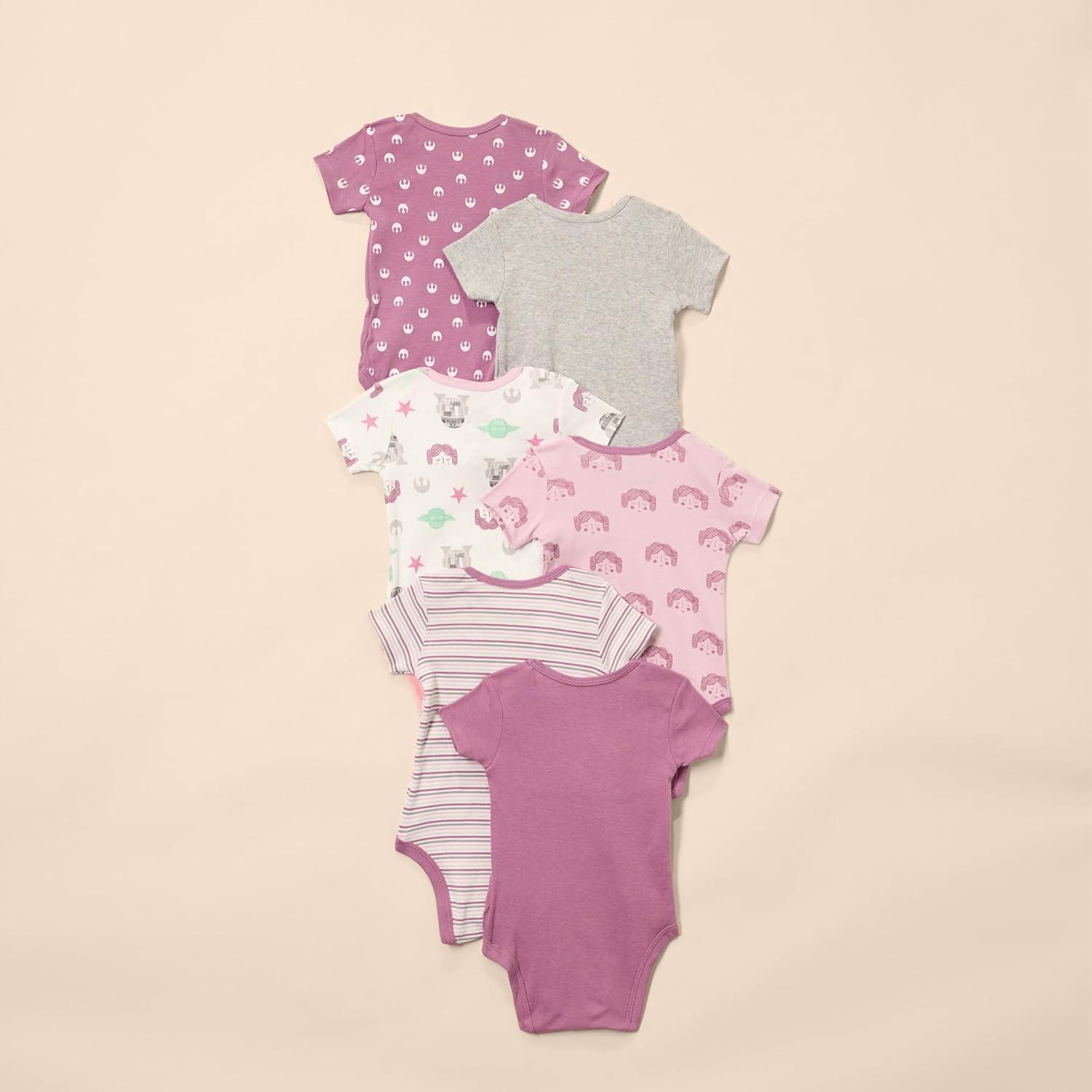 Amazon Essentials Disney | Marvel | Star Wars | Princess Baby Girls’ Short-Sleeve Bodysuits, Pack of 6(Star Wars Tiny Rebel)