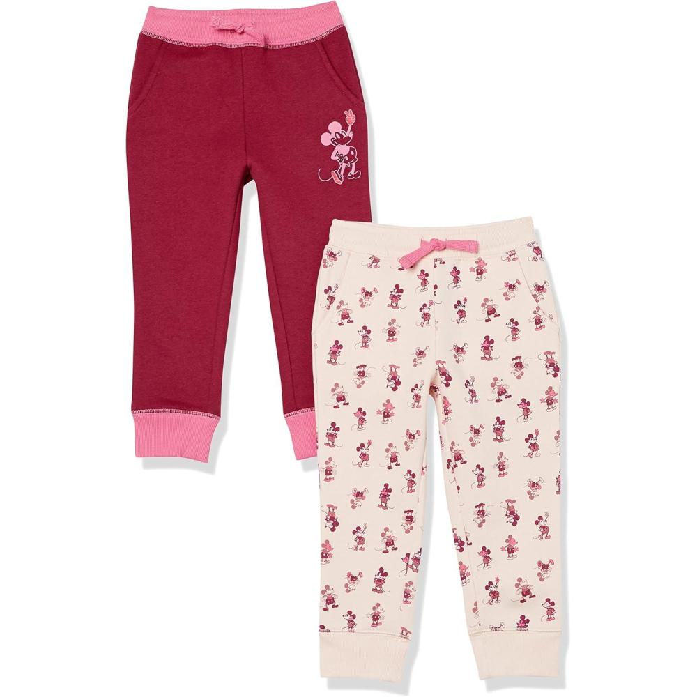 Amazon Essentials Disney | Marvel | Star Wars | Princess Girls and Toddlers’ Fleece Jogger Sweatpants, Pack of 2(Minnie Icons)