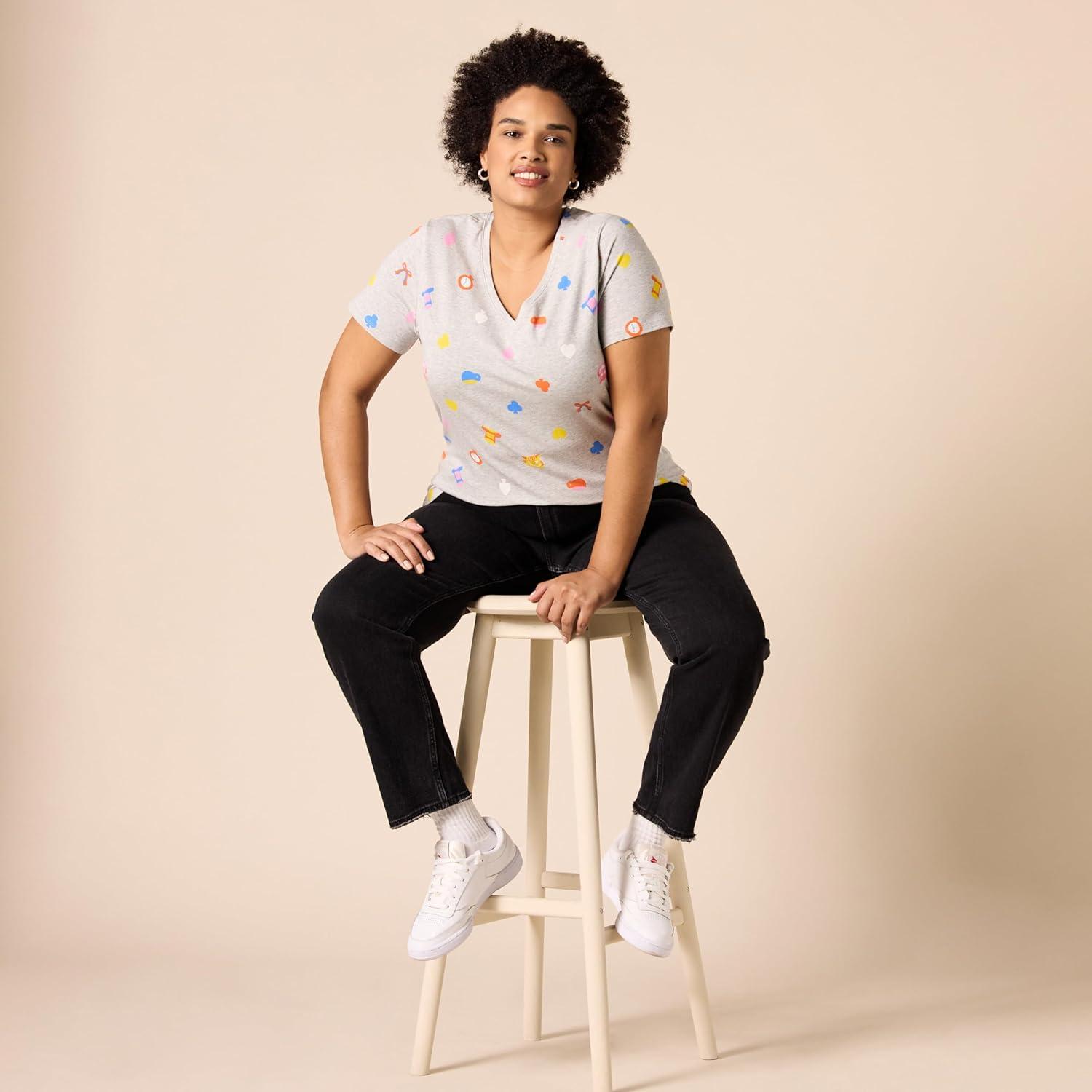 Amazon Essentials Disney | Marvel | Star Wars | Princess Women’s Classic-Fit Short-Sleeve V-Neck T-Shirt, Multipacks(Disney Alice)