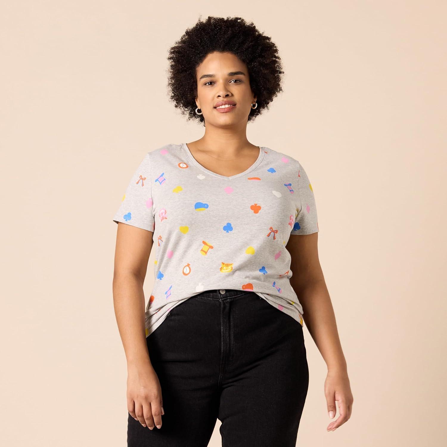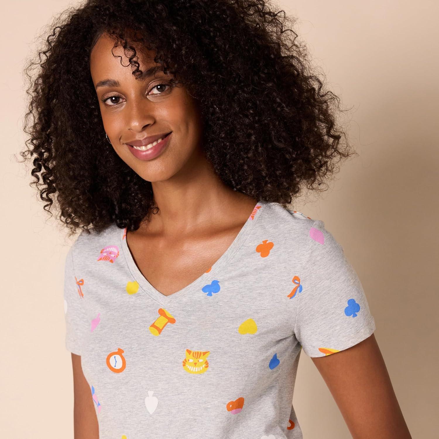Amazon Essentials Disney | Marvel | Star Wars | Princess Women's Classic-Fit Short-Sleeve V-Neck T-Shirt, Multipacks(Disney Alice)