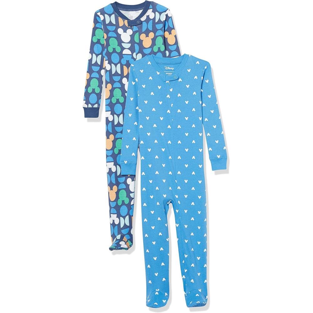 Amazon Essentials Disney | Marvel | Star Wars Unisex Babies’ and Toddlers’ Snug-Fit Cotton Footed Pajamas, Multipacks(Mickey Oh Boy)