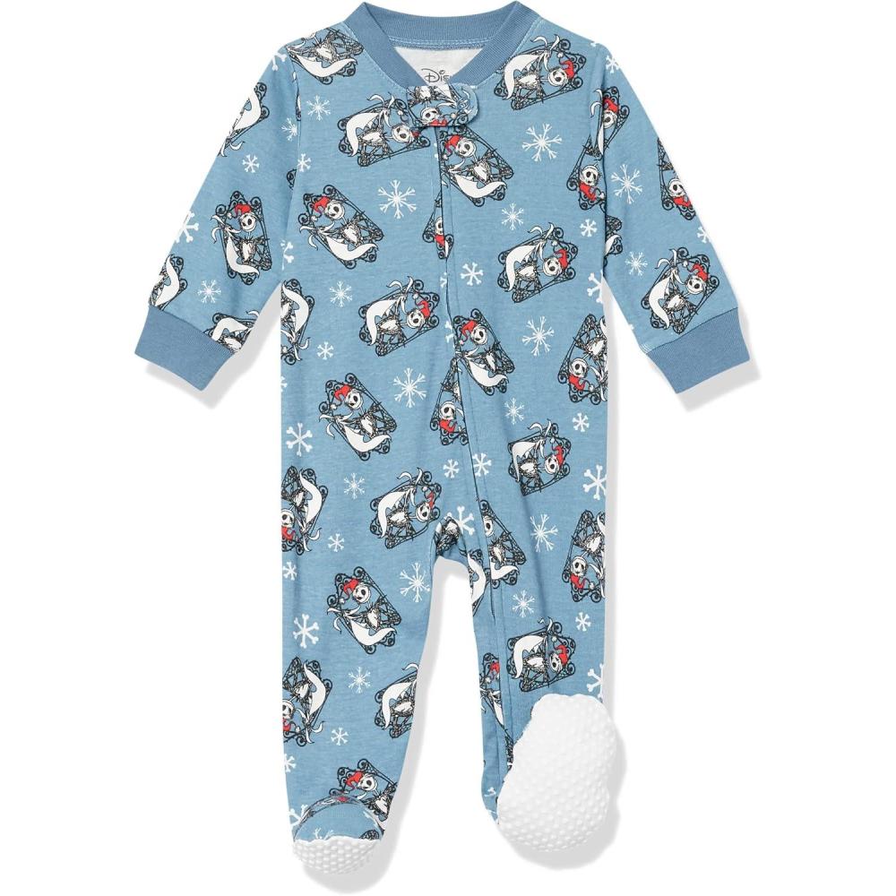 Amazon Essentials Disney | Marvel | Star Wars Unisex Babies' and Toddlers' Snug-Fit Cotton Footed Pajamas, Multipacks(Nightmare Santa Jack - Sleep & Play)